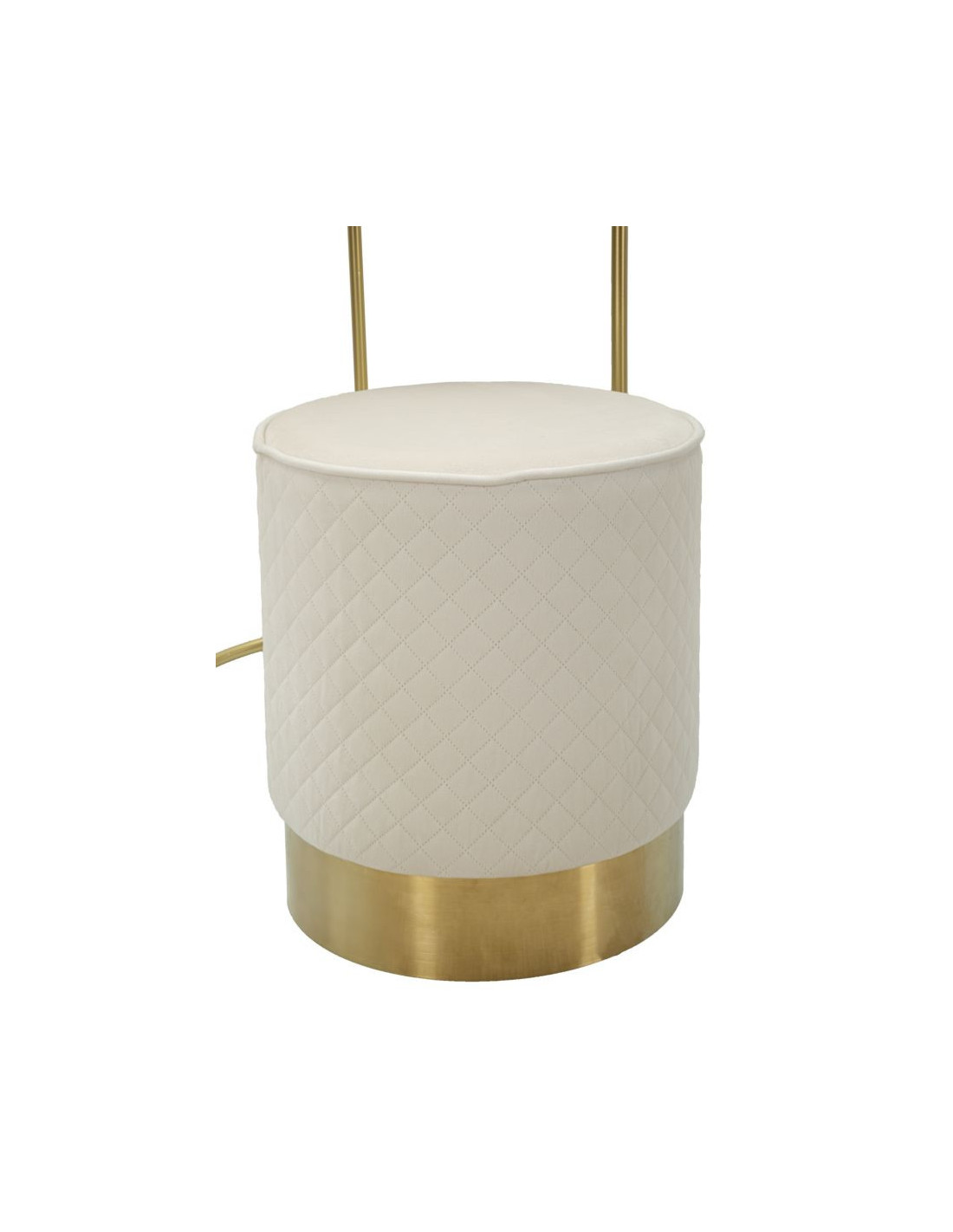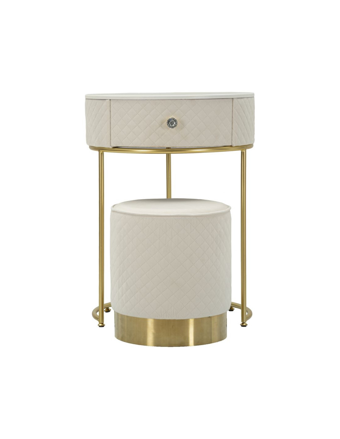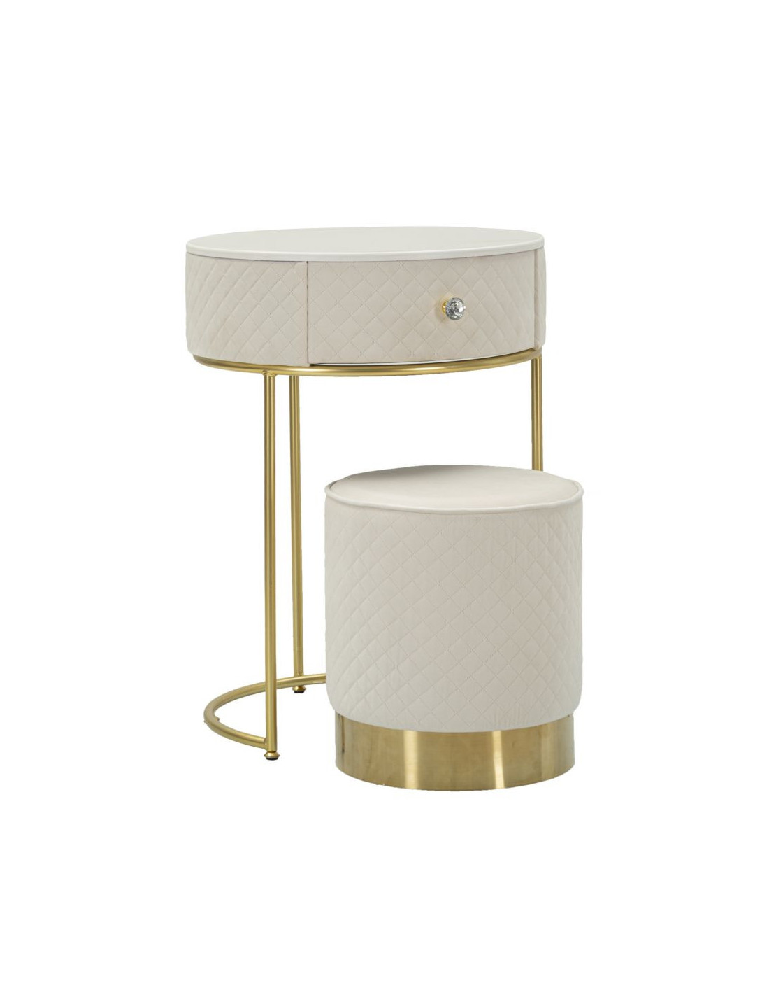 Petite Coiffeuse avec pouf Ronde 1 tiroir Velours Blanc crème Bois MDF Métal Doré Vellit