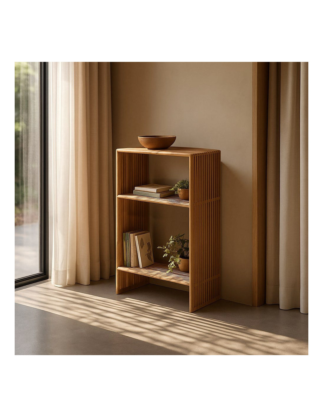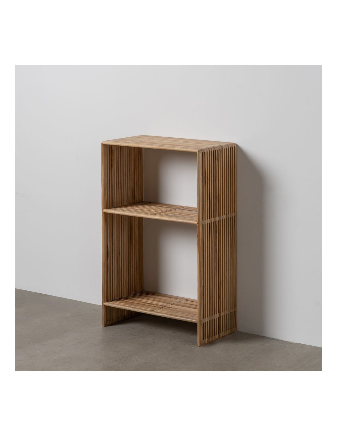 Petite Étagère moderne scandinave 2 niveaux Bois de teck recyclé Naturel Bellamonte