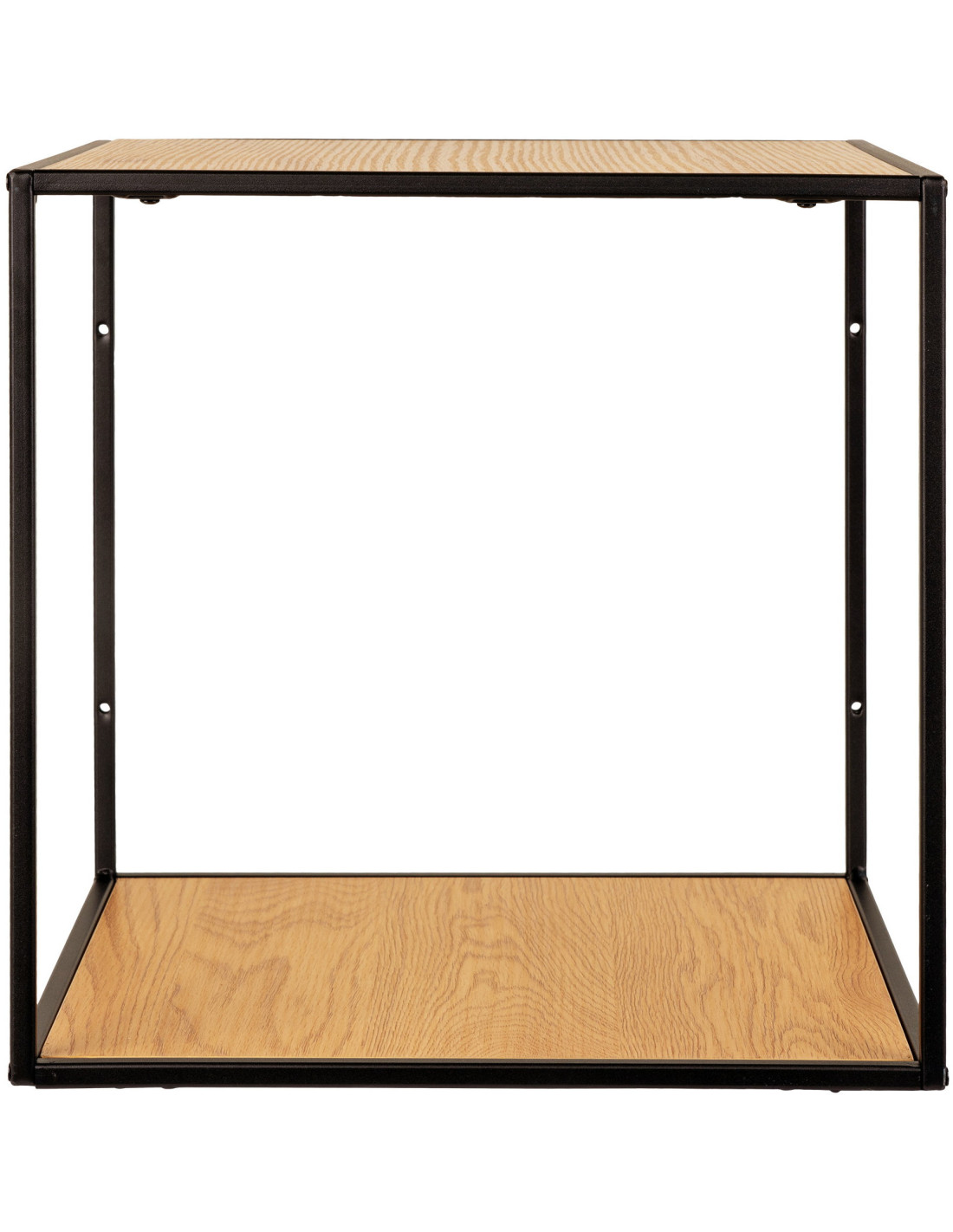 Petite Étagère murale moderne 2 niveaux Métal Noir Panneau de particules Feuille de mélamine Naturel Effet chêne Vita