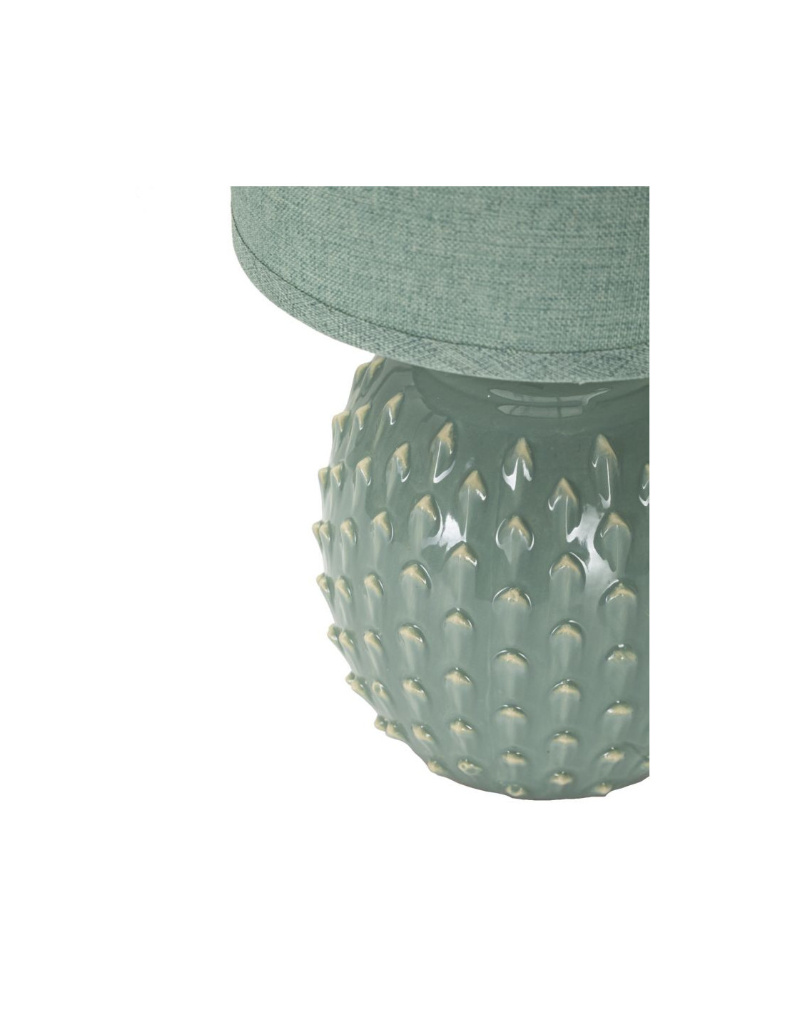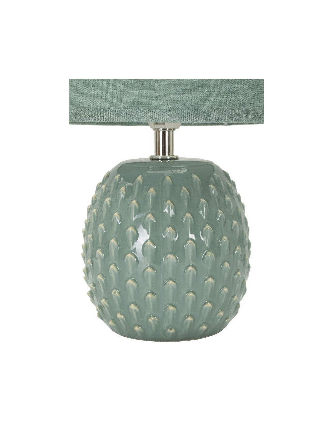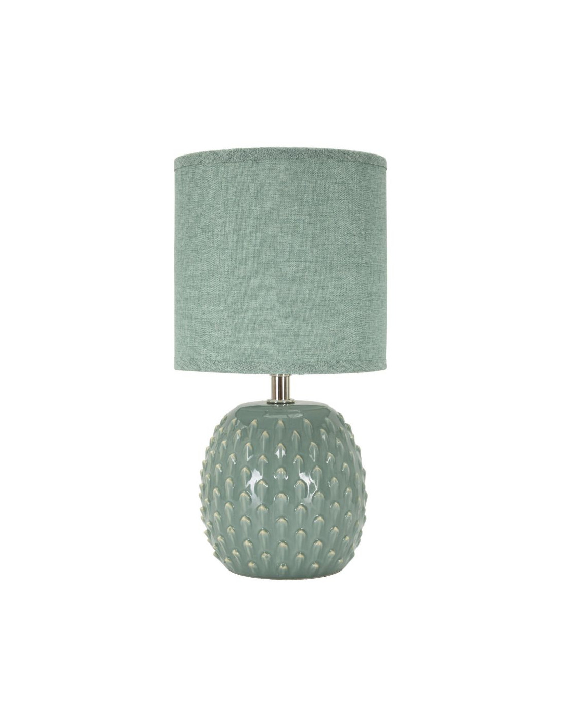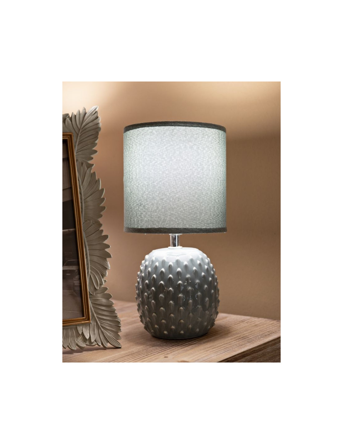 Petite Lampe à poser moderne Hauteur 27 cm en Céramique Tissu Bleu clair Métal Argenté Pontus
