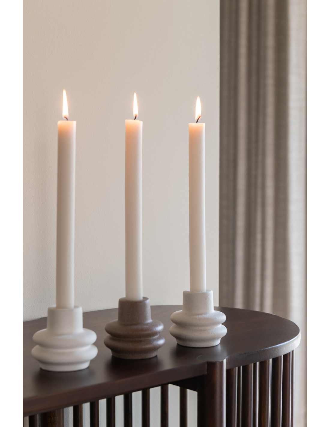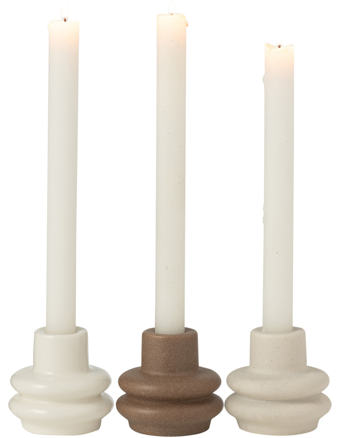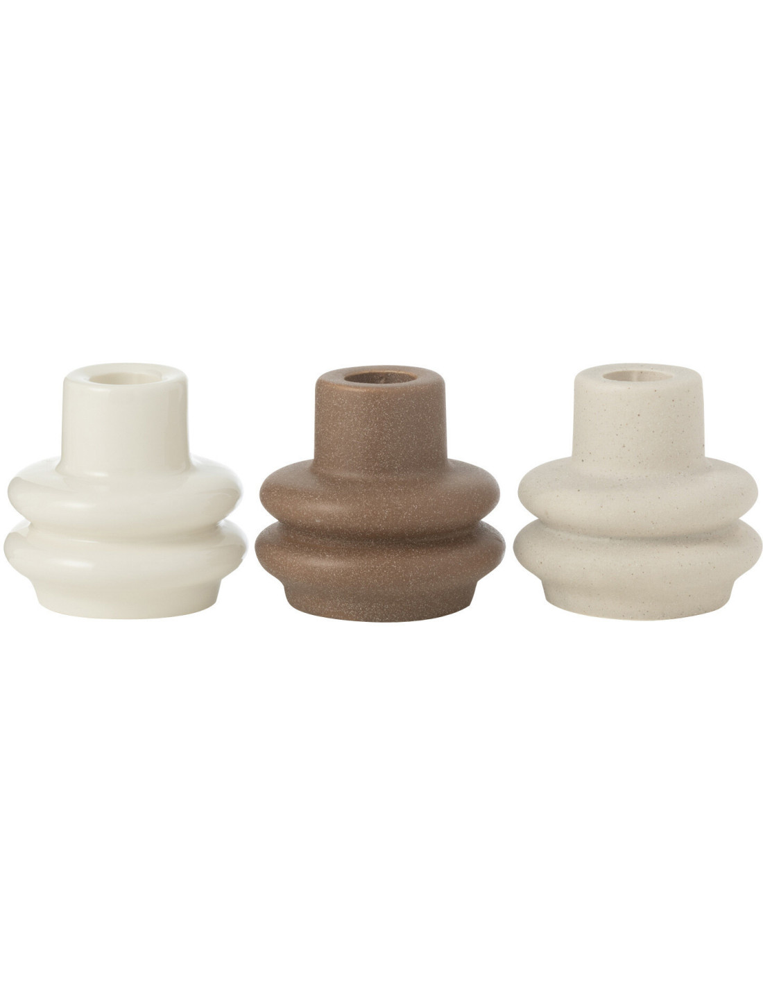 Petits Bougeoirs modernes Bouées 8 cm en Porcelaine Blanc Marron Beige Lipo (Lot de 3) - 1
