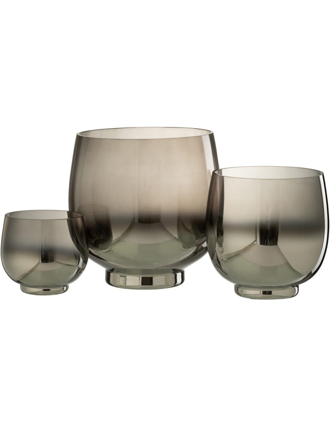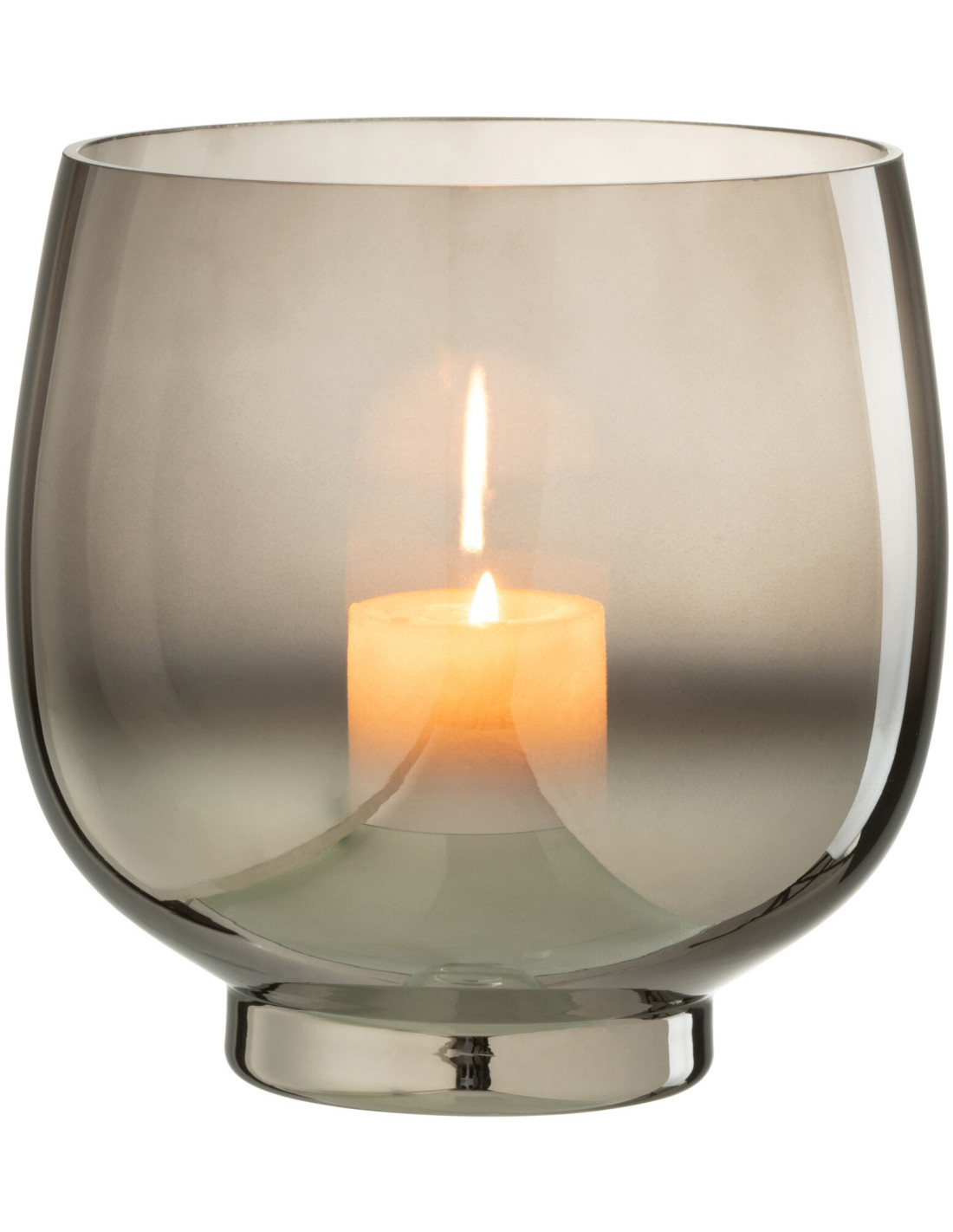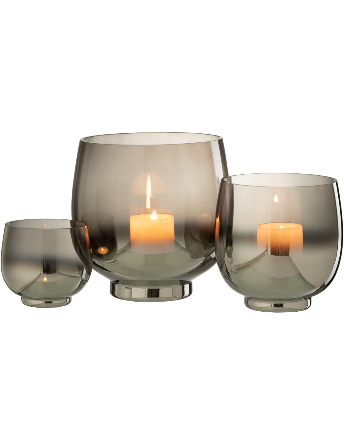 Photophore original rond Diamètre 17 cm en Verre fumé Gris Argenté Lioran