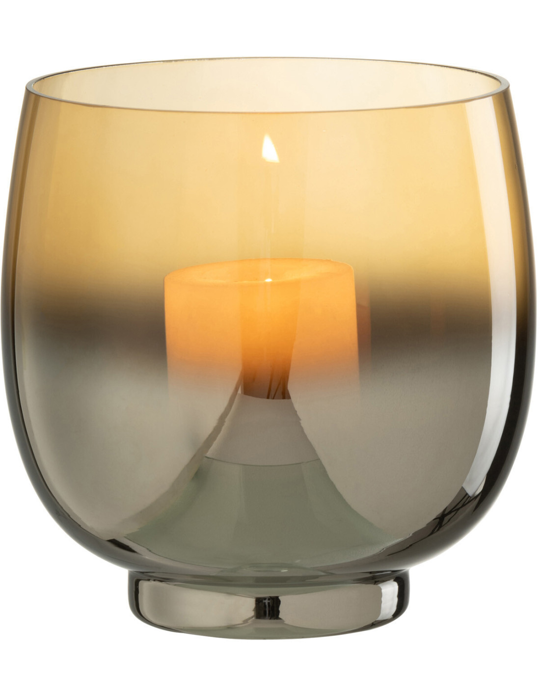 Photophore original rond Diamètre 13 cm en Verre fumé Jaune Argenté Lioran