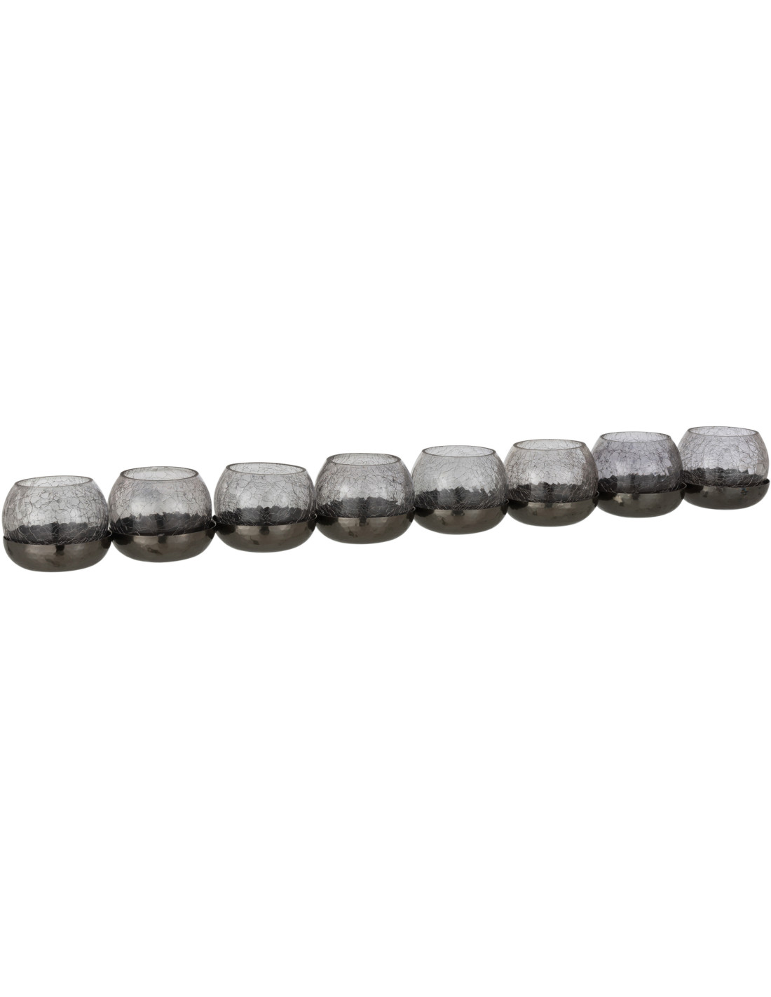 Structure en métal avec 8 boules en verre effet craquelé teinté noir. Poids de 1,73 kg, assurant stabilité et qualité perçue.