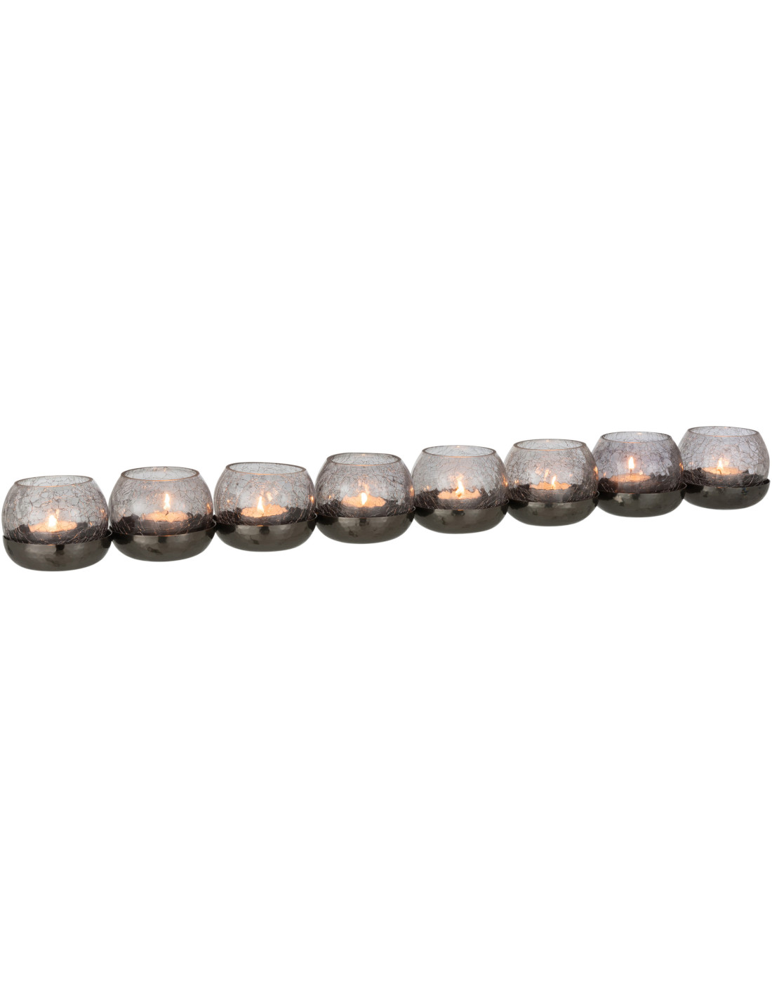 Une ligne de lumière spectaculaire. Avec ses huit boules en verre craquelé, ce photophore transforme votre espace en une véritable mise en scène lumineuse. Une pièce forte, pensée pour capter tous les regards.