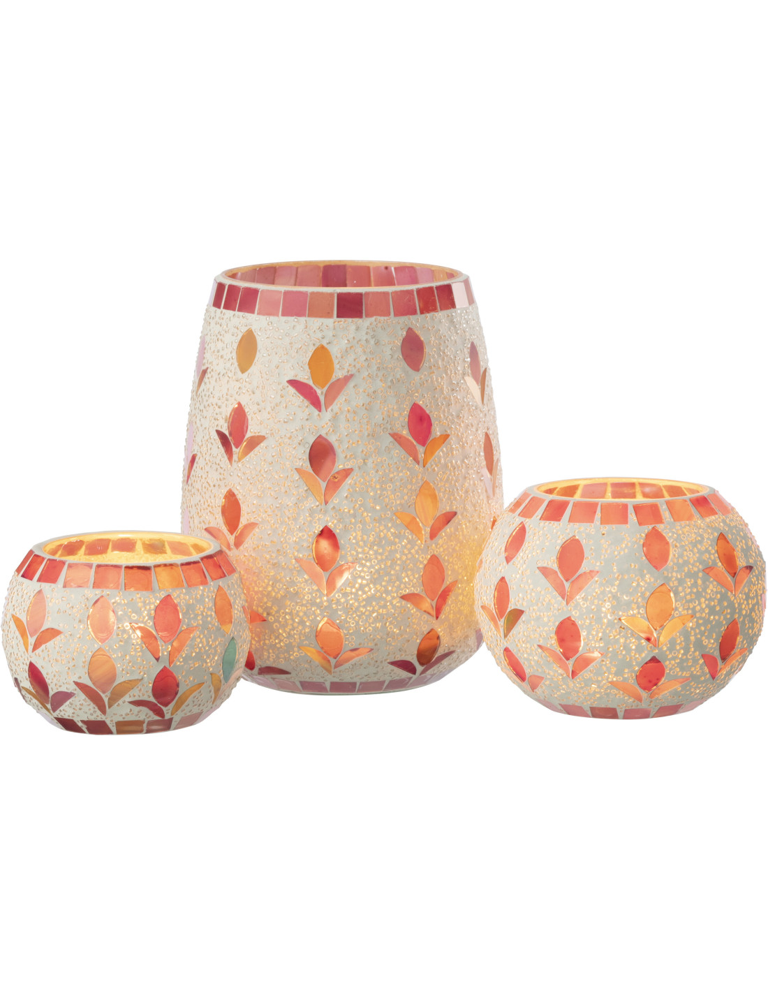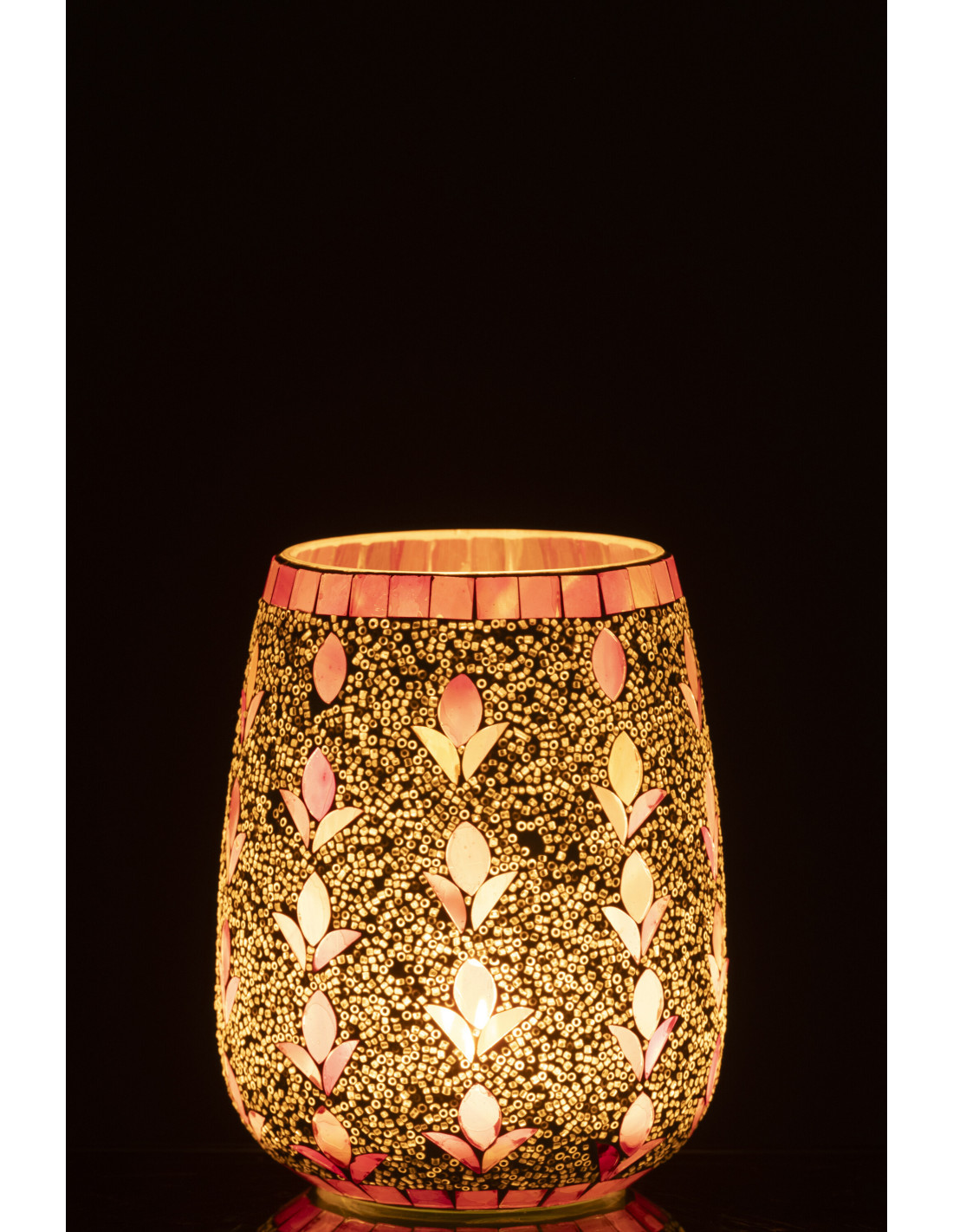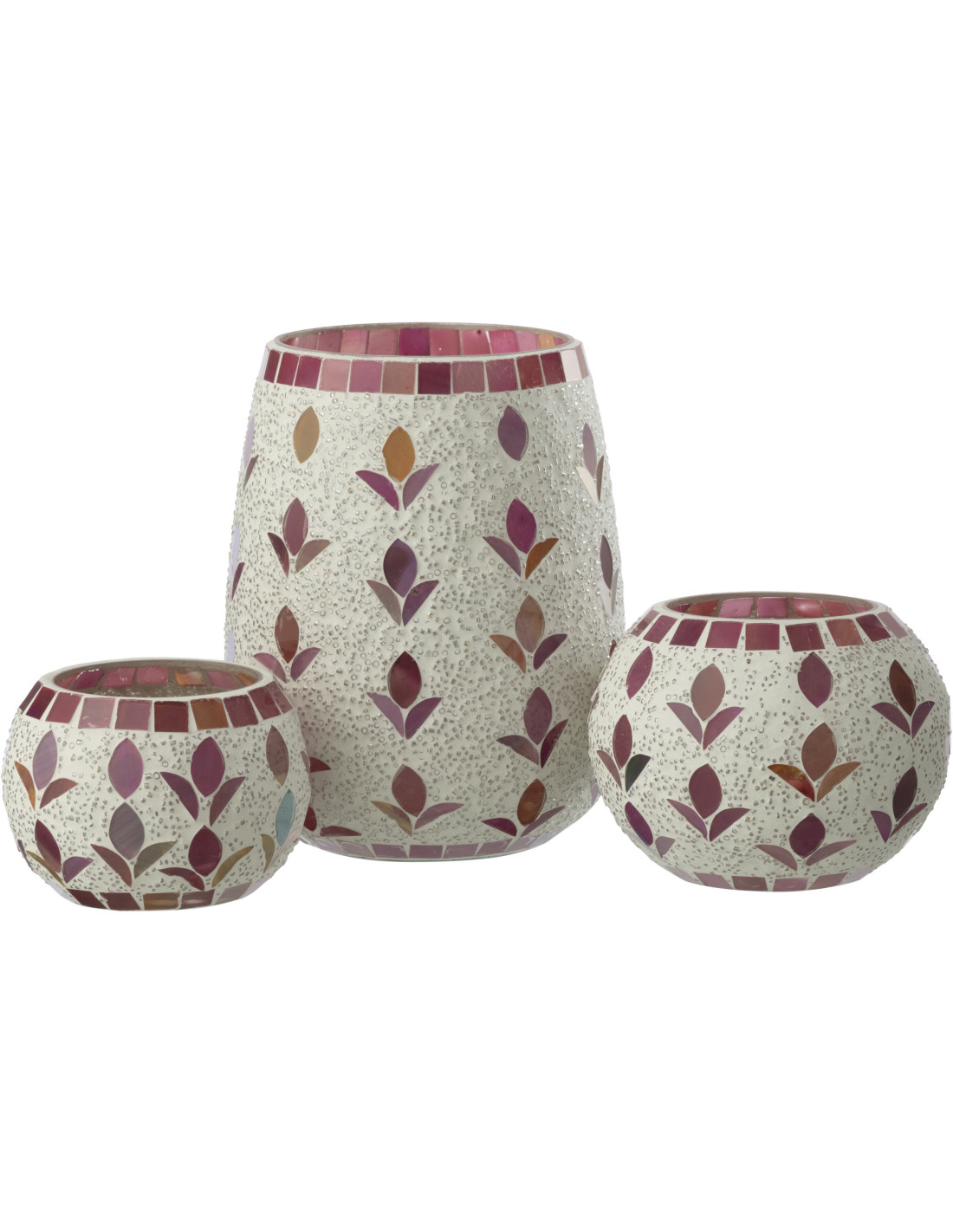 Photophore bohème D 12 cm Verre Blanc cassé Rose fuchsia Mosaïque Motif fleurs Nolika