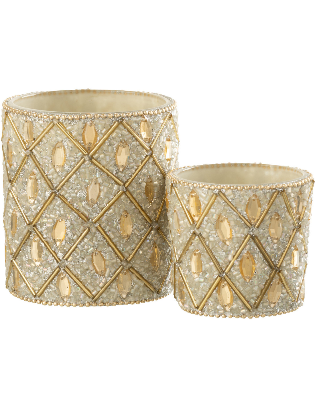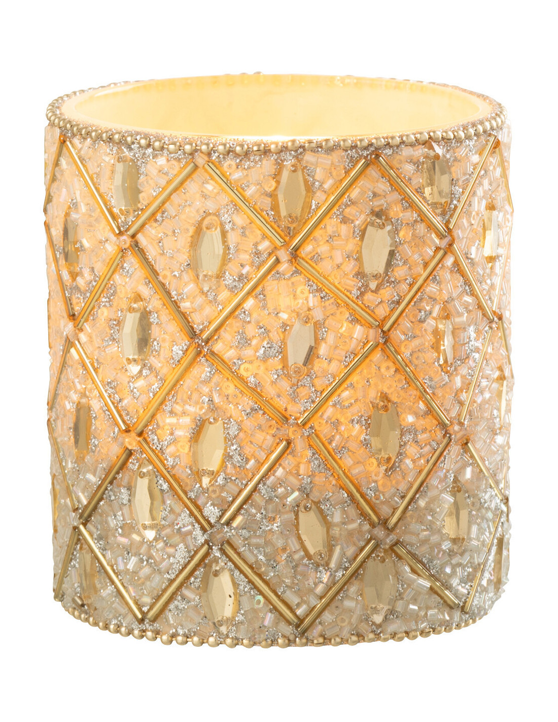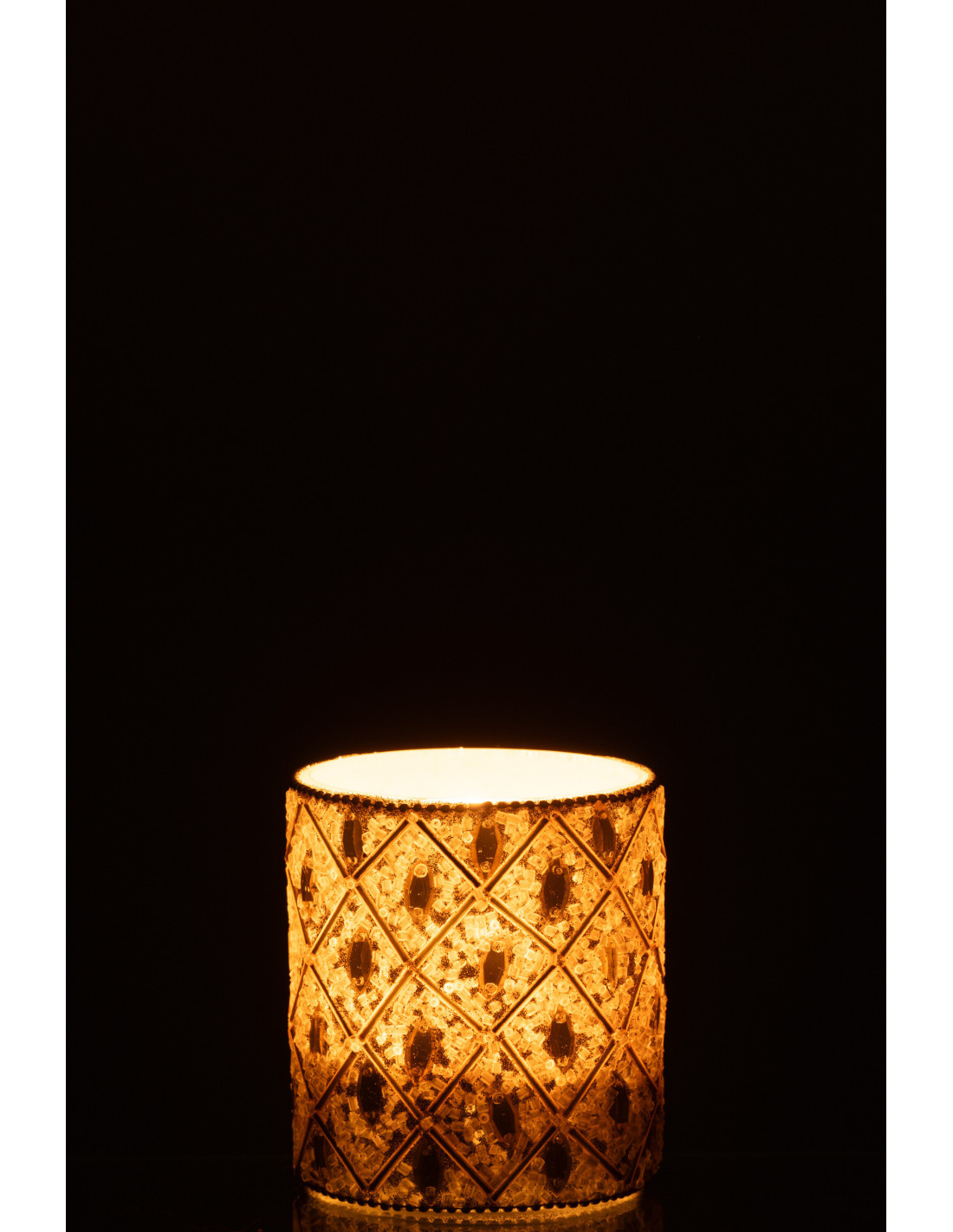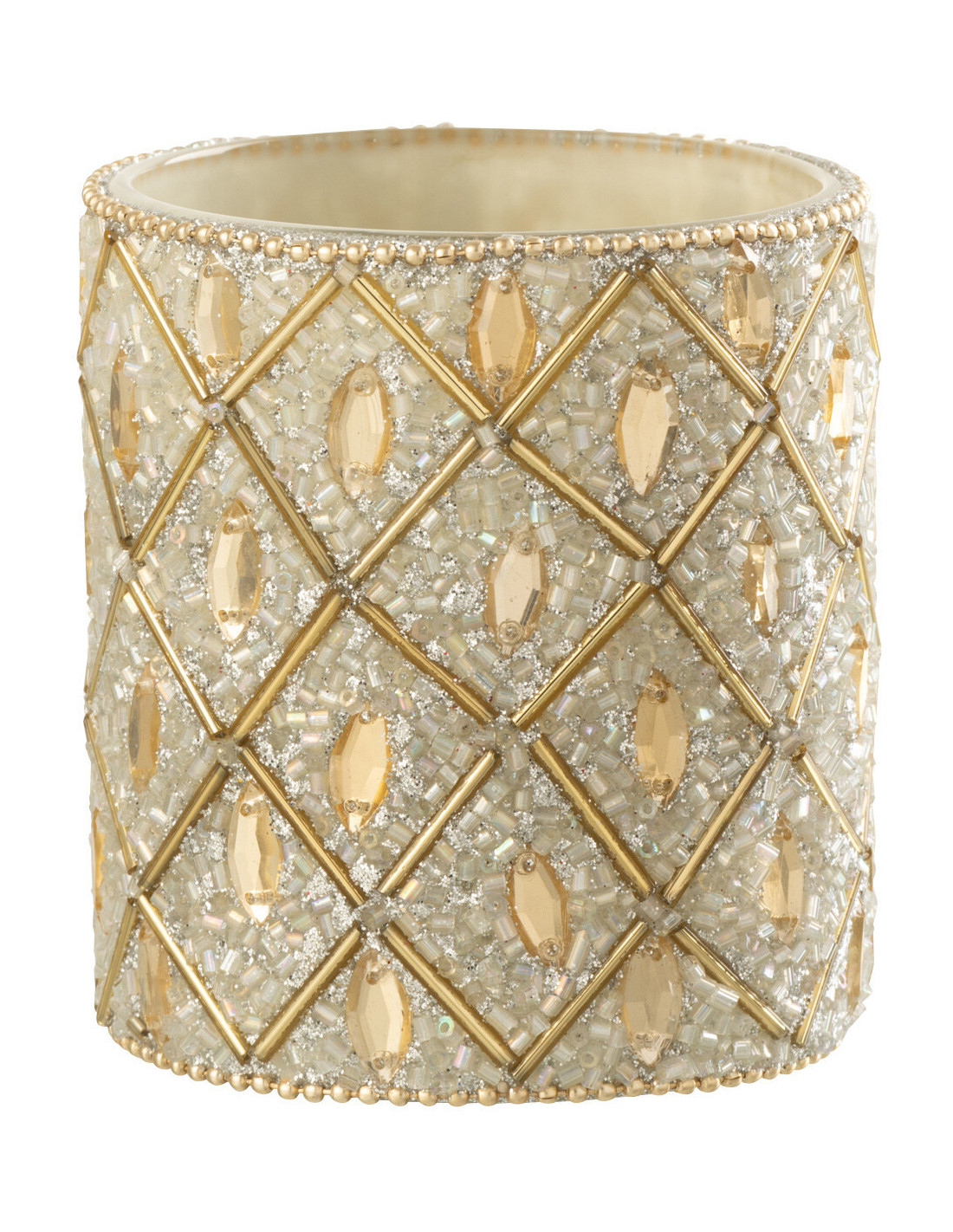 Photophore bohème oriental Diamètre 7 cm en Verre Blanc Perle Doré Pyris