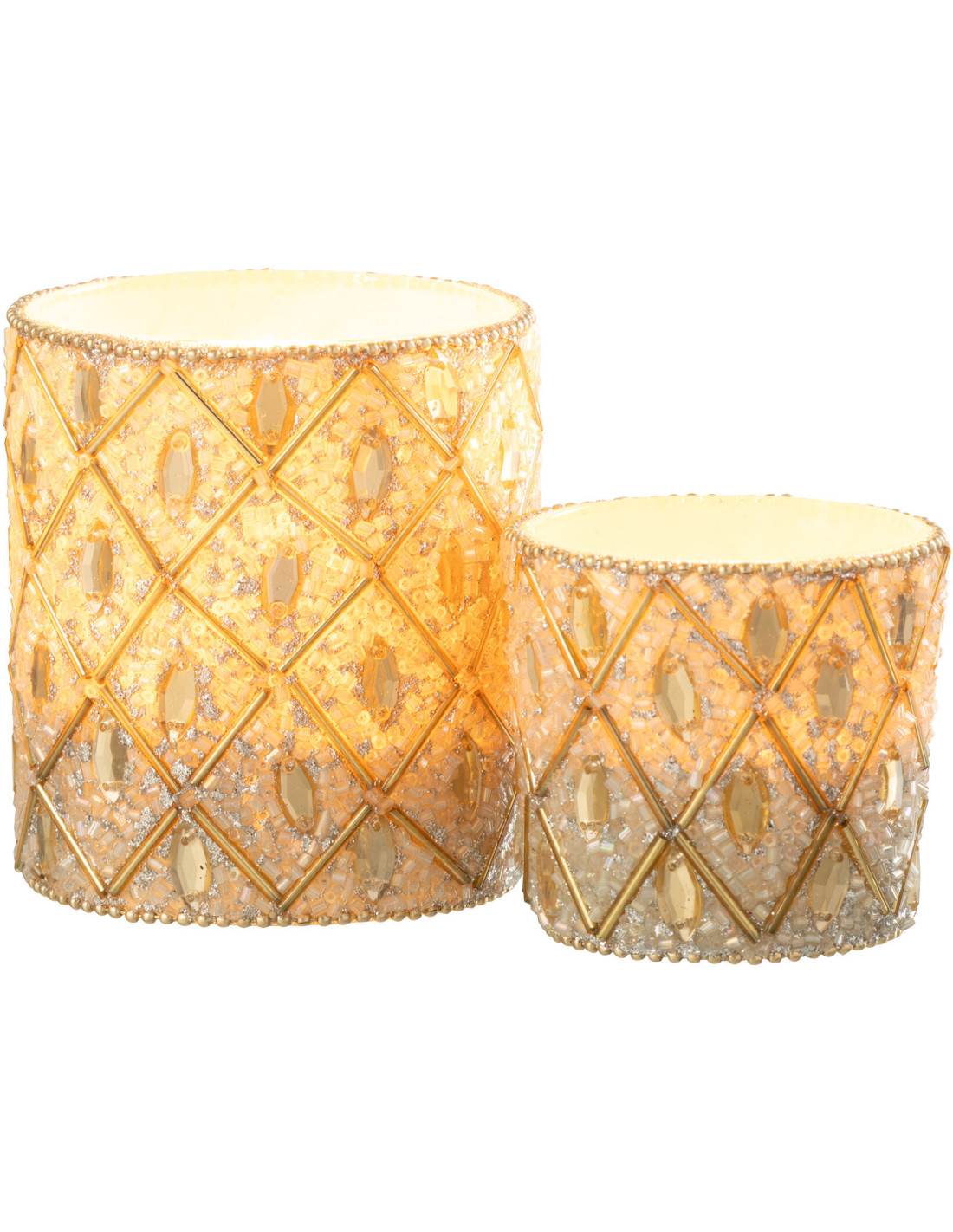 Photophore bohème oriental Diamètre 7 cm en Verre Blanc Perle Doré Pyris - 1