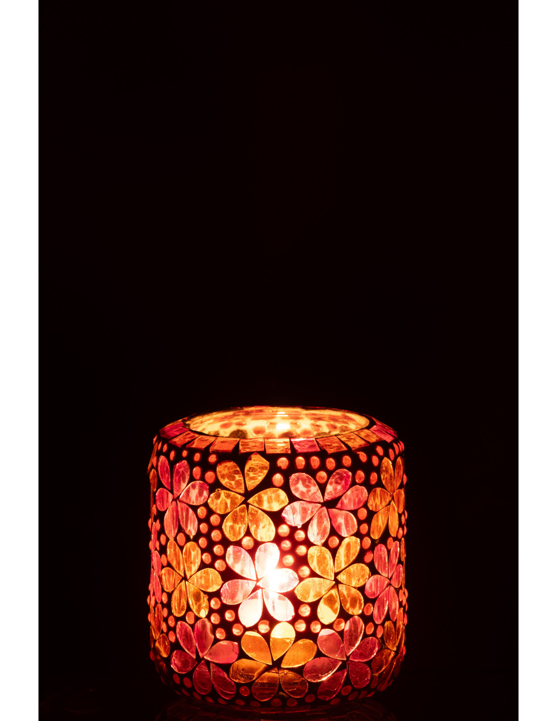 Photophore bohème pop seventies D 10 cm Verre Rose foncé Orange Mosaïque Motif fleurs Floralyth