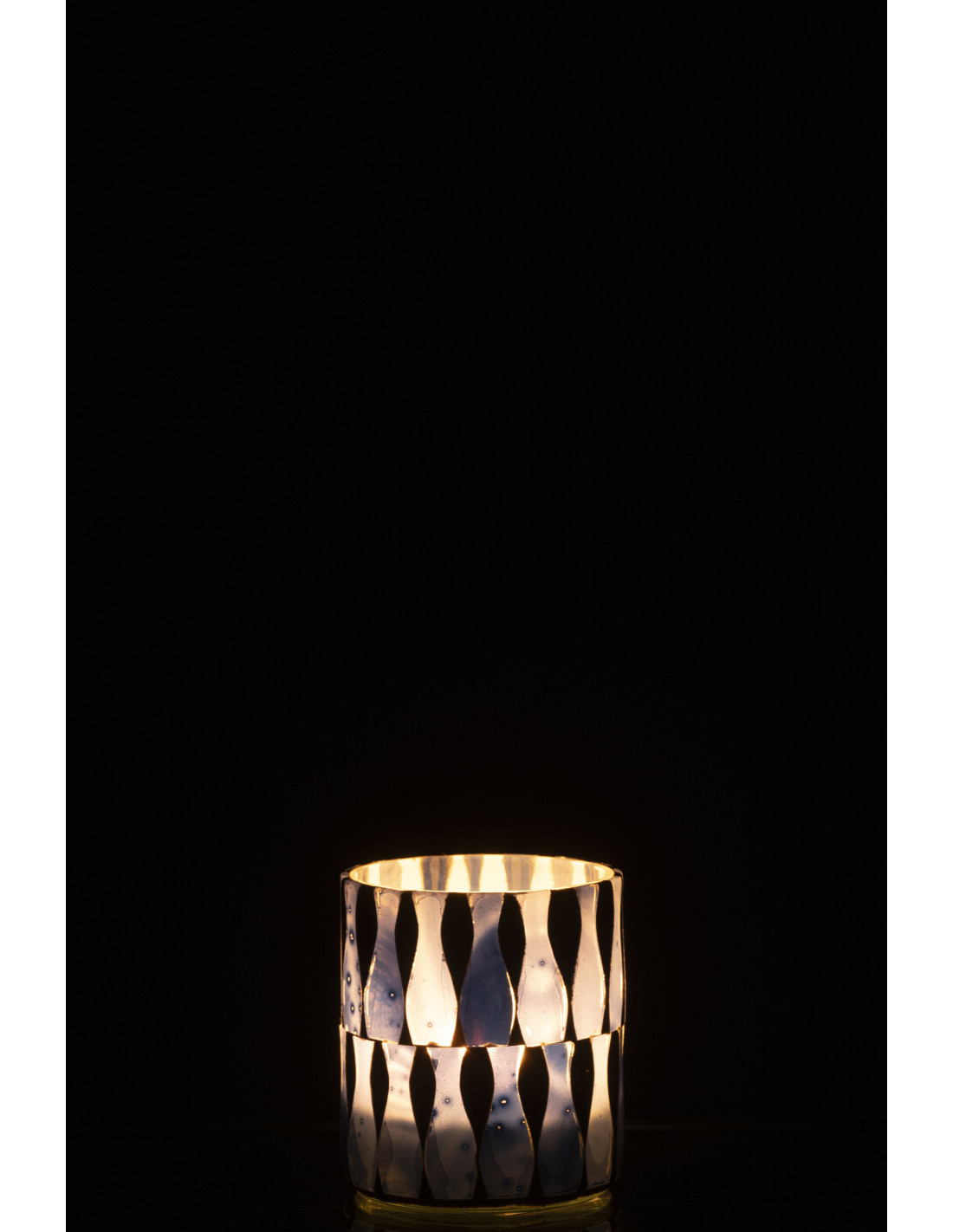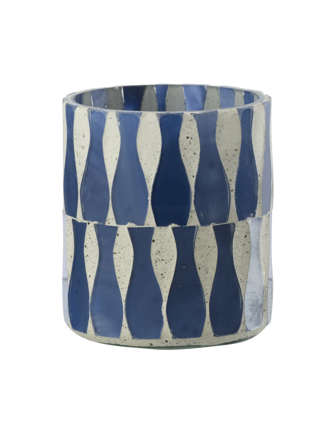 Photophore Bord de mer style méditerranéen D 7 cm Verre Bleu Blanc Motif mosaïque Costea