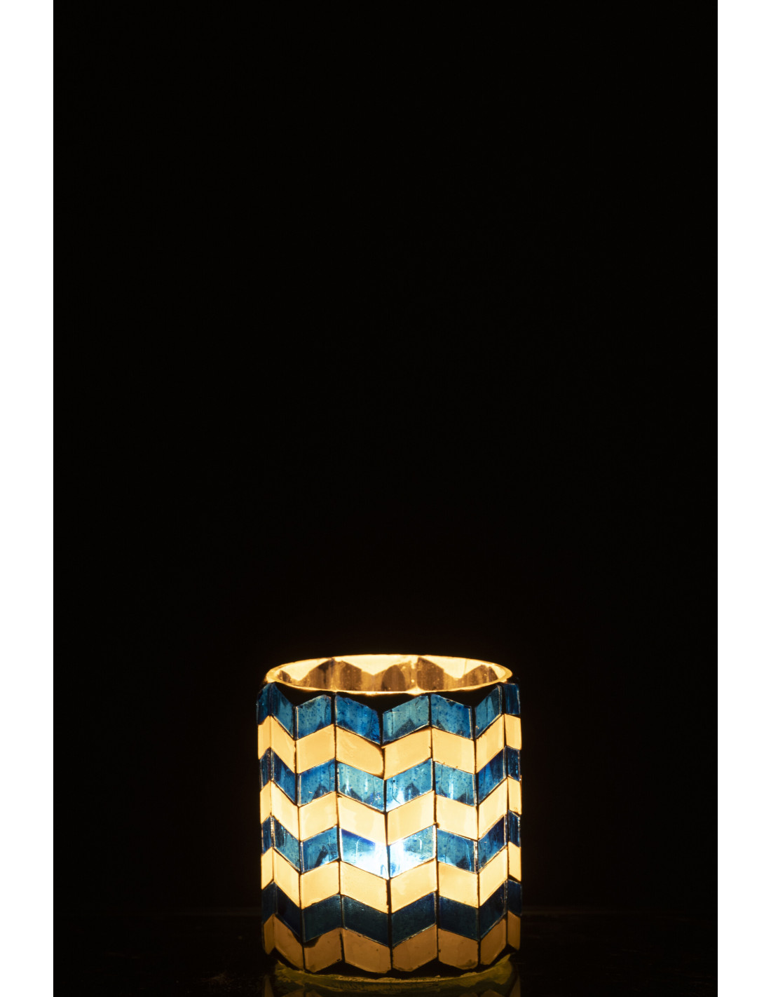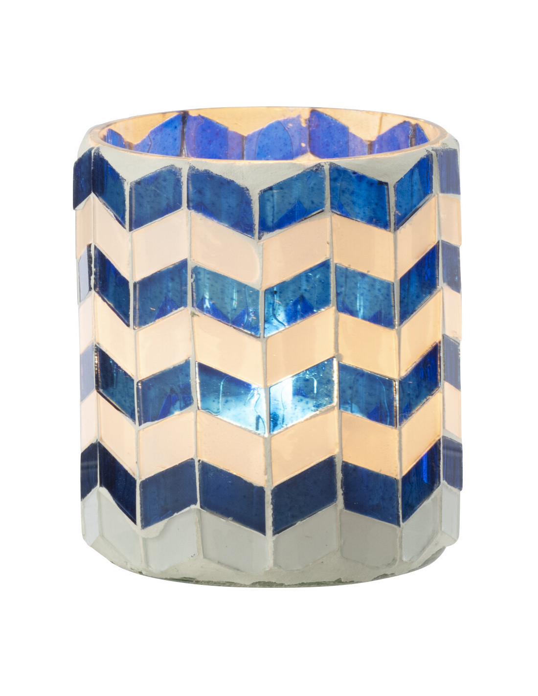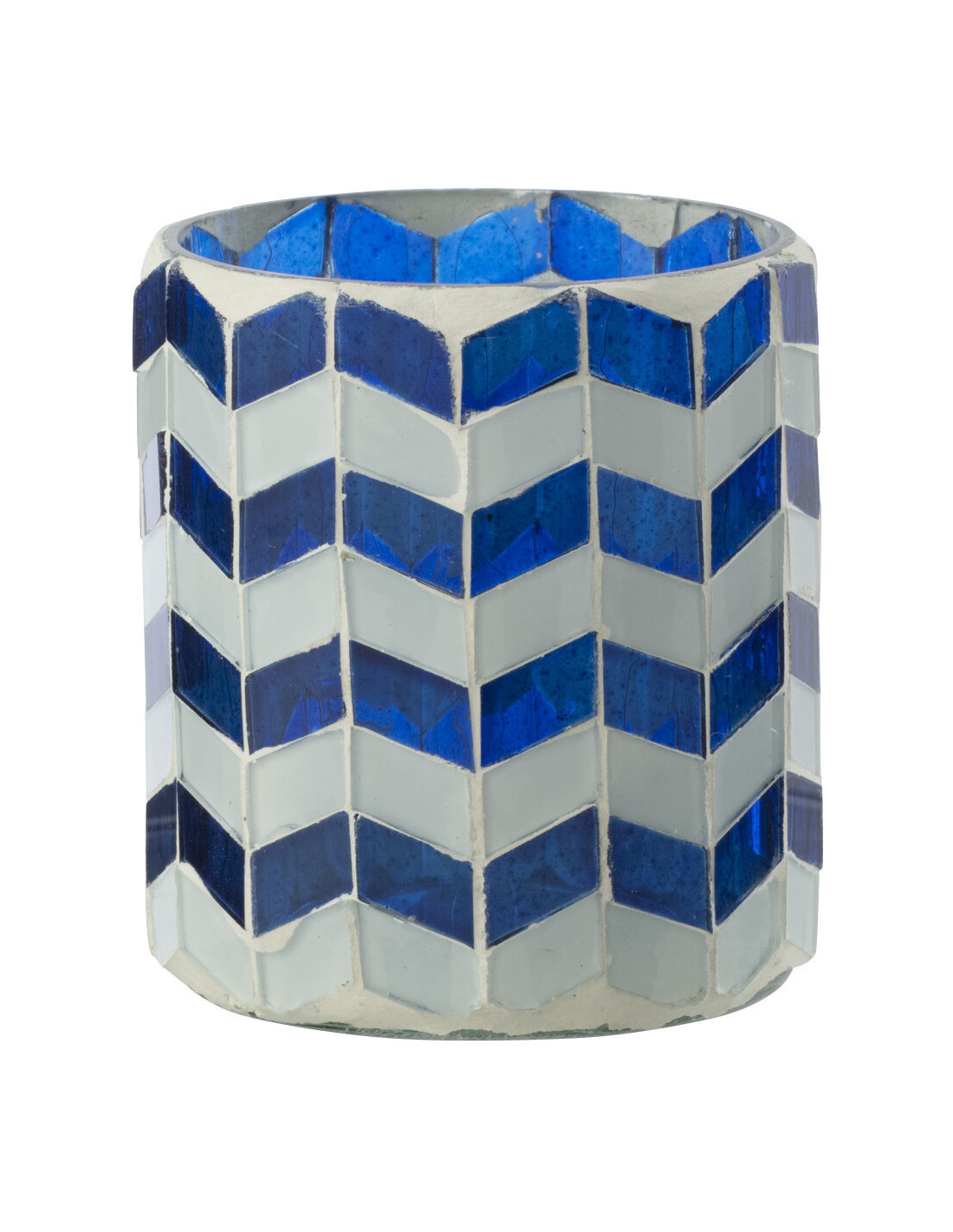 Photophore Bord de mer style méditerranéen D 7 cm Verre Bleu Blanc Motif mosaïque Marbella