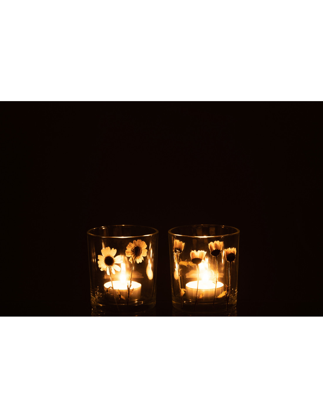 Photophore Cylindrique Diamètre 7 cm en Verre Transparent Motif marguerites Chrysan (Lot de 2) - 1