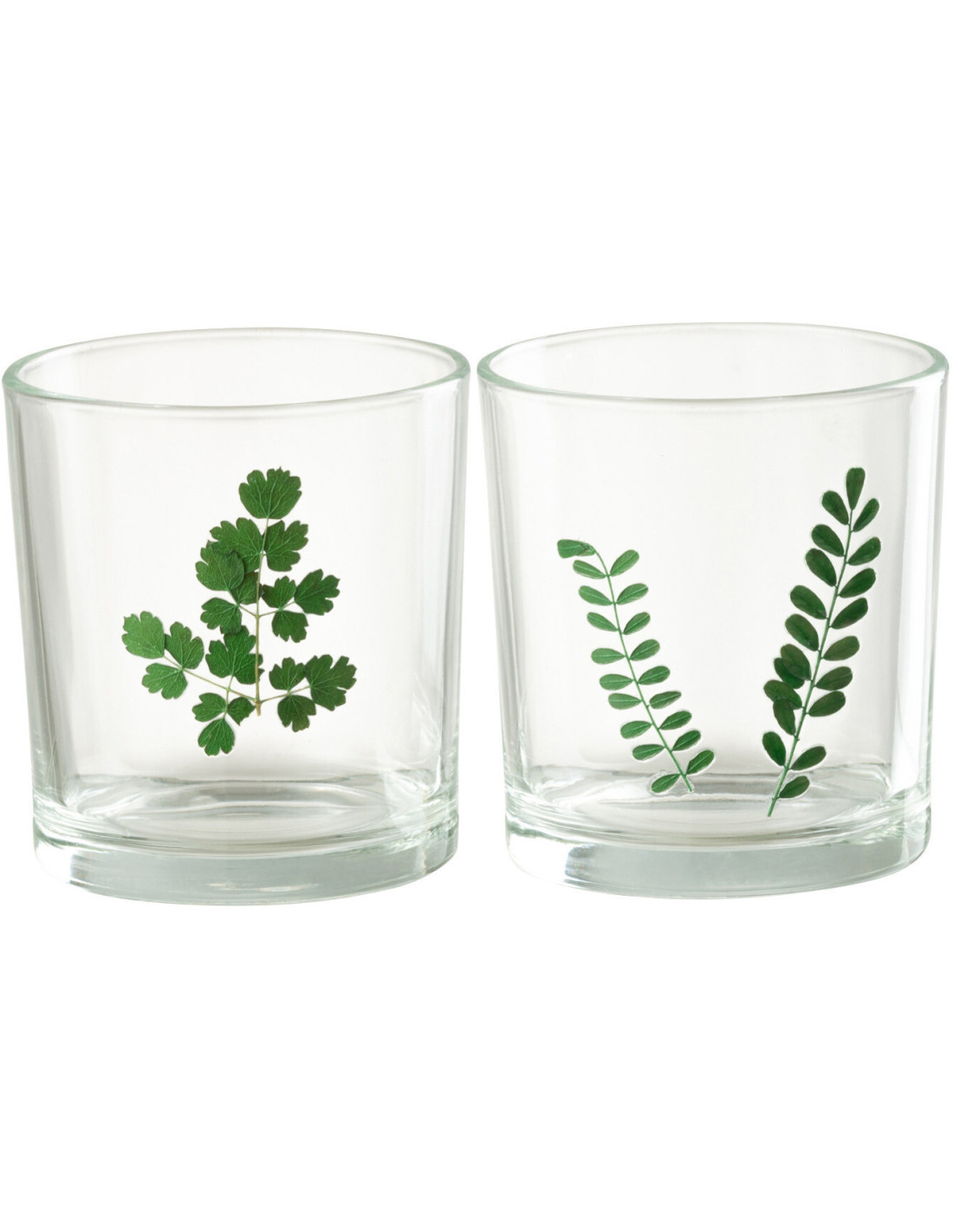 Photophore Cylindrique Diamètre 7 cm en Verre Transparent Vert Motif feuilles Ceres (Lot de 2)