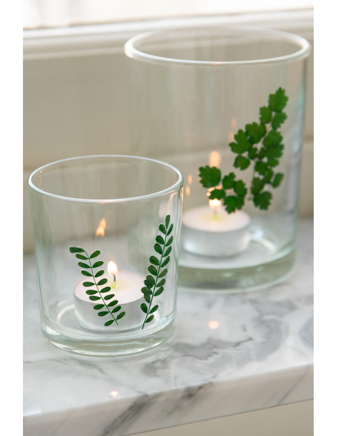 Photophore Cylindrique Diamètre 7 cm en Verre Transparent Vert Motif feuilles Ceres (Lot de 2) - 4