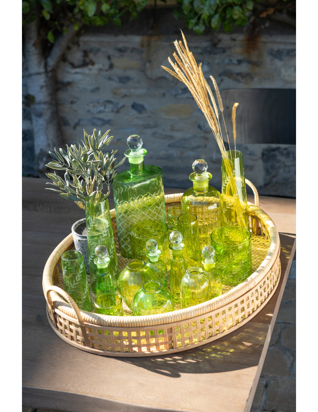 Photophore Cylindrique Diamètre 9 cm en Verre Vert Motif feuilles Roman (Lot de 2) - 8