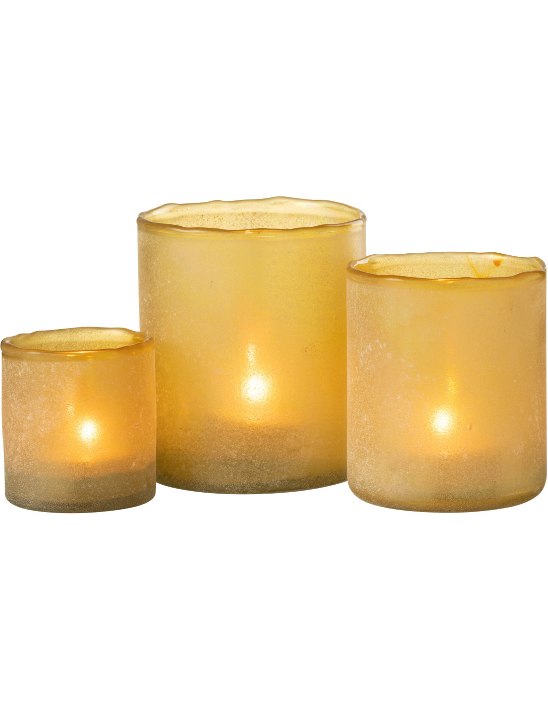Photophore Cylindrique en Verre Jaune Effet givré Ruby (Lot de 3) - 1