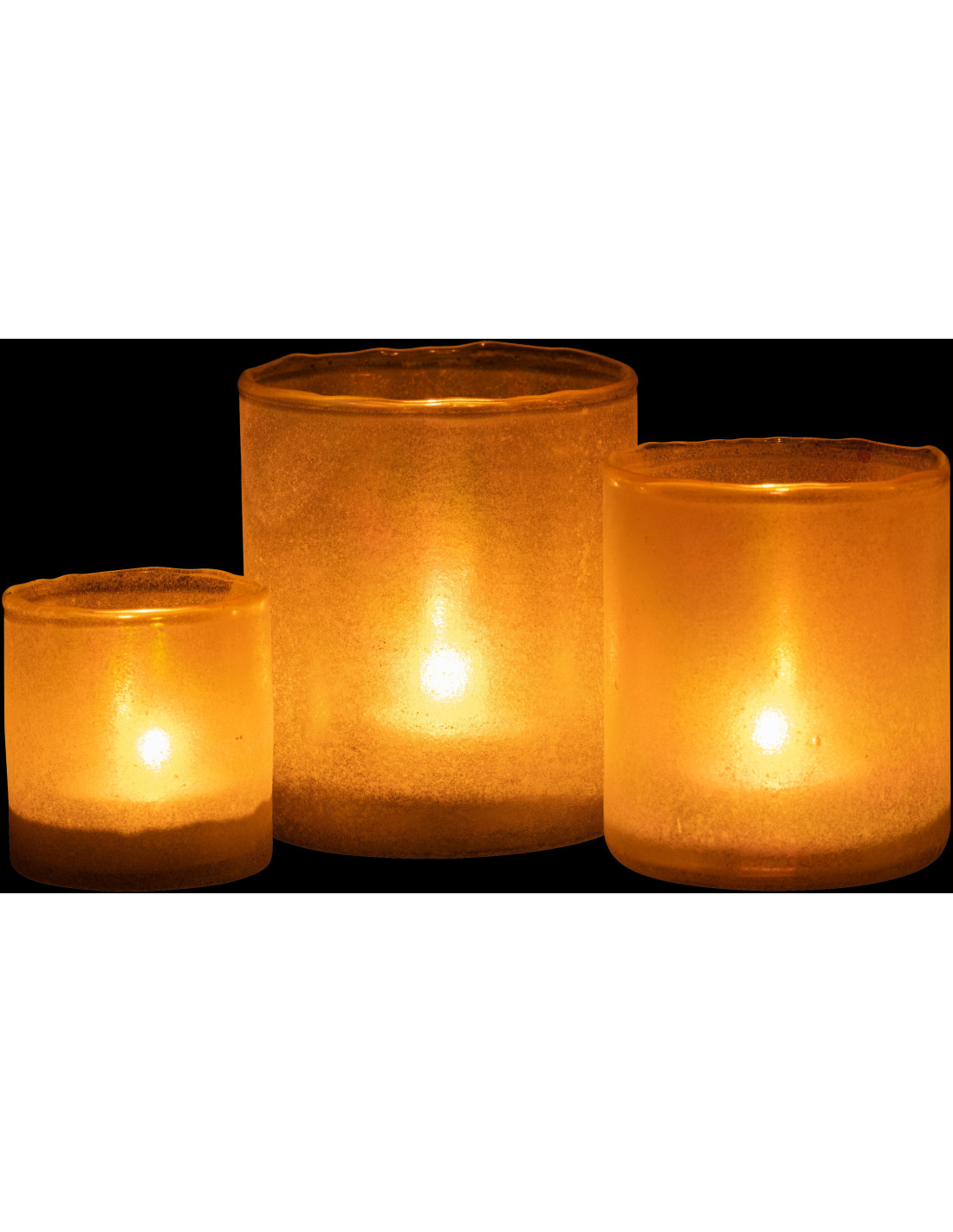 Photophore Cylindrique en Verre Jaune Effet givré Ruby (Lot de 3)