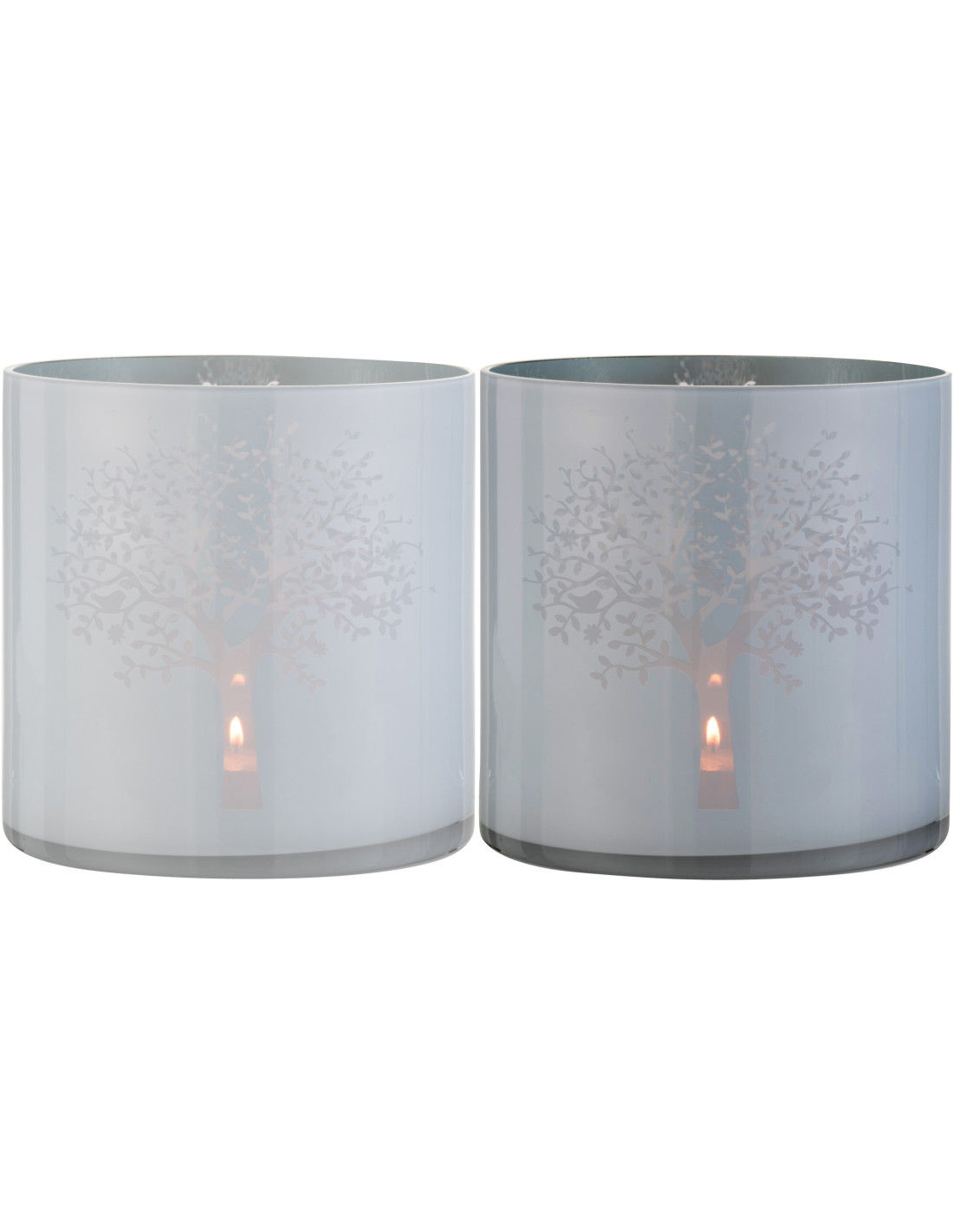 Photophore Cylindrique Hivero Diamètre 20 cm en Verre Blanc Bleu Motif Arbre (Lot de 2)