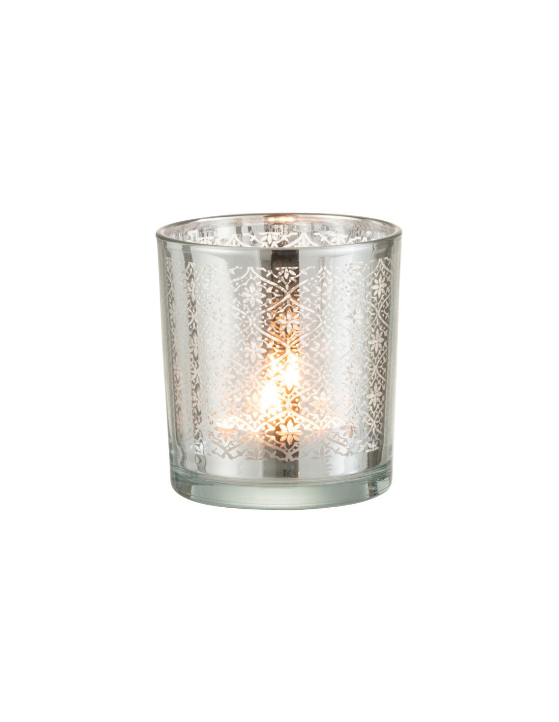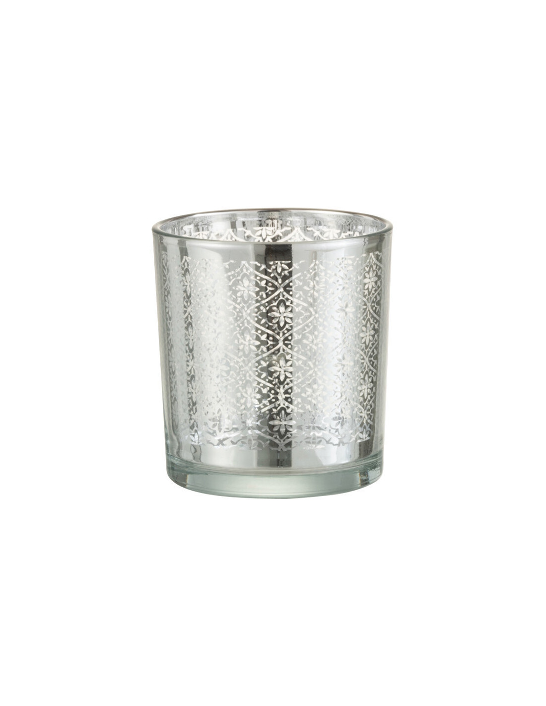 Photophore Cylindrique Lumiro Diamètre 7 cm en Verre Argenté Motif oriental
