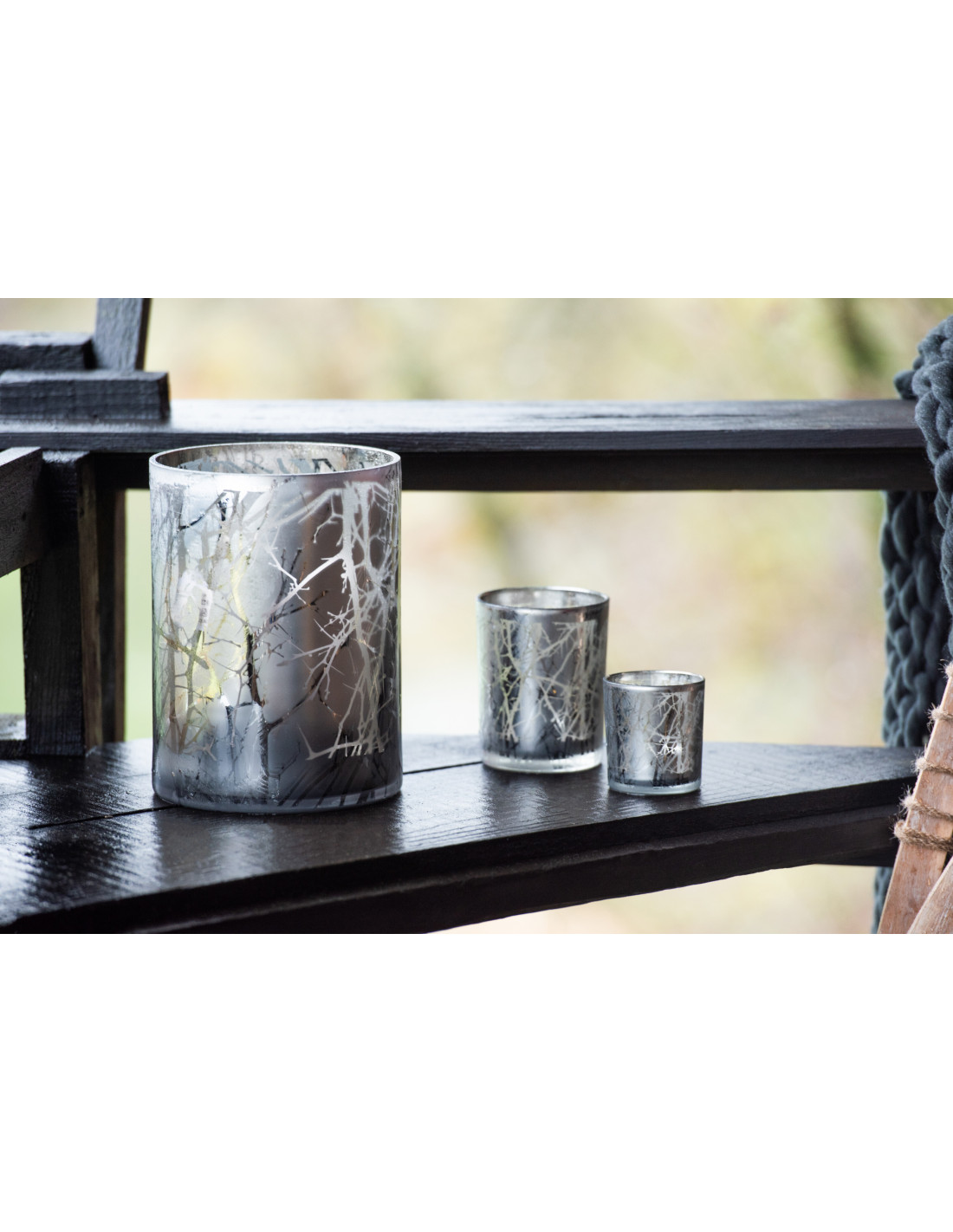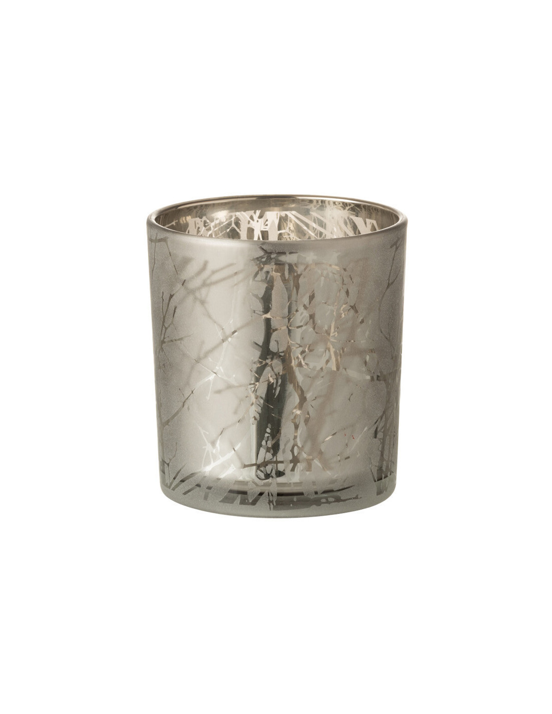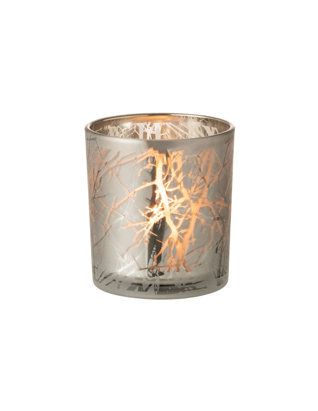 Photophore Cylindrique Naturio Diamètre 7 cm en Verre Gris Motif branches