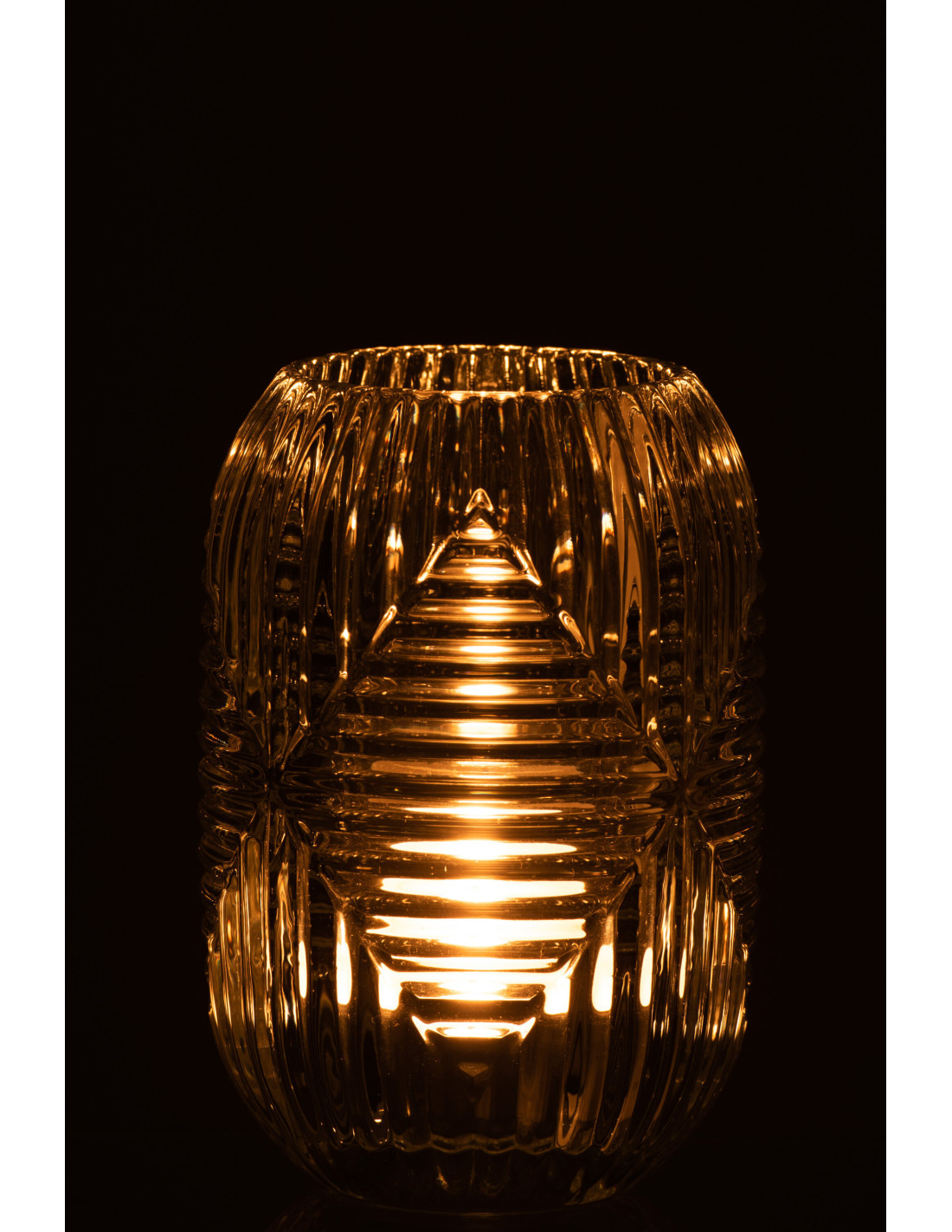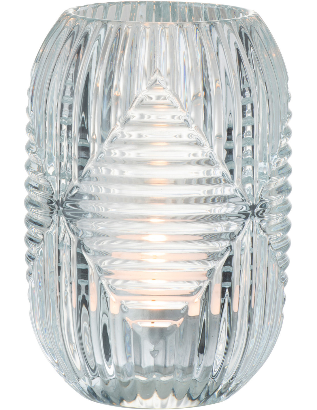 Photophore Cylindrique Vinisya Diamètre 9 cm en Verre Transparent Motif lignes - 1