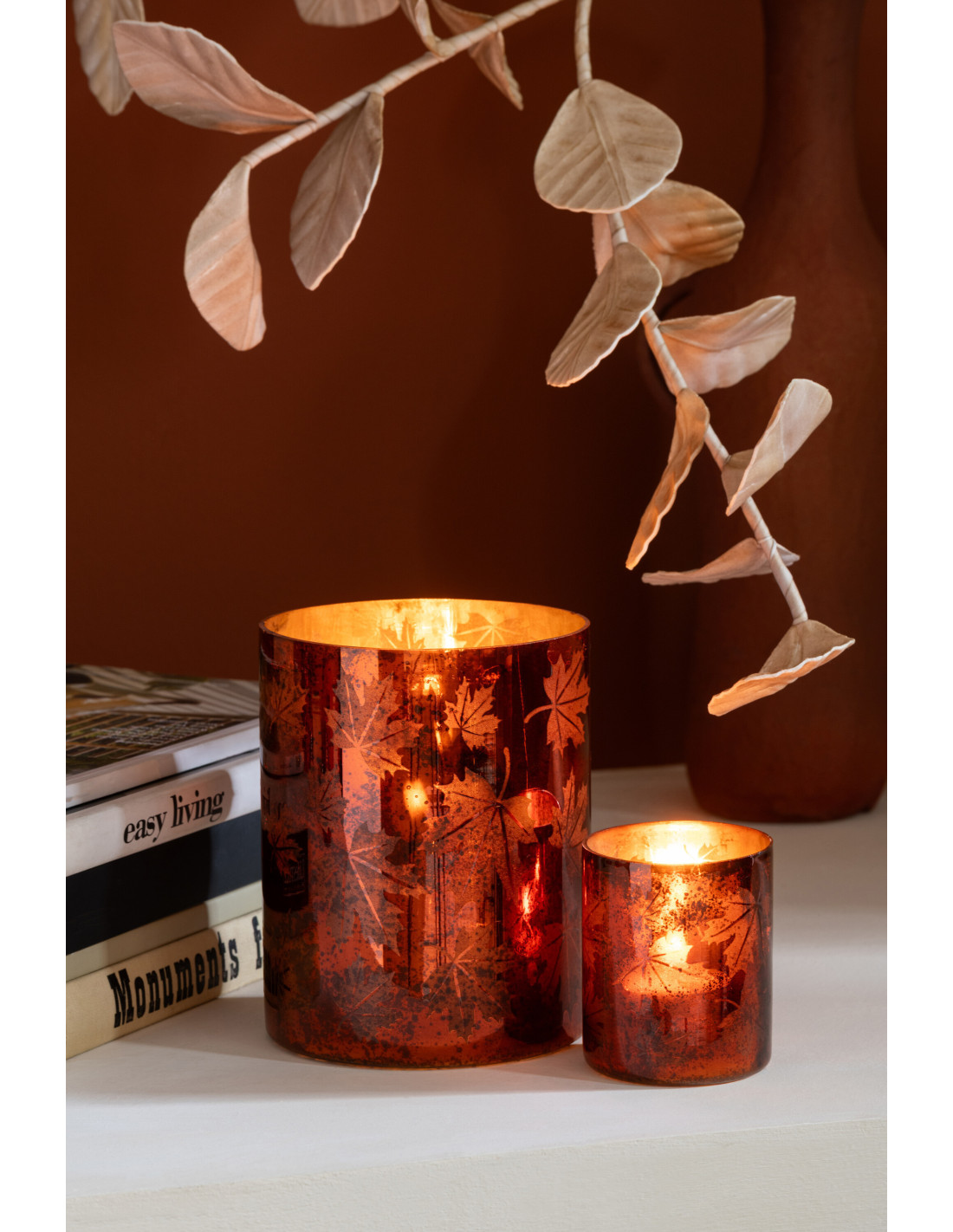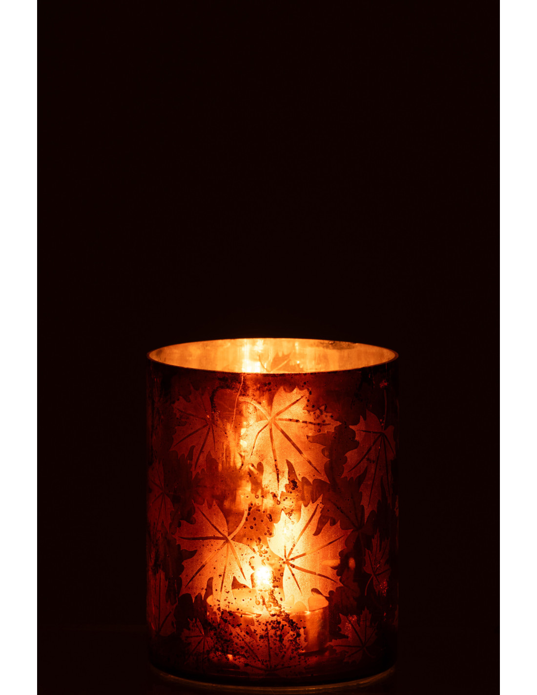 Photophore déco automne Diamètre 12 cm en Verre Marron rouille Motif feuilles Leavoni