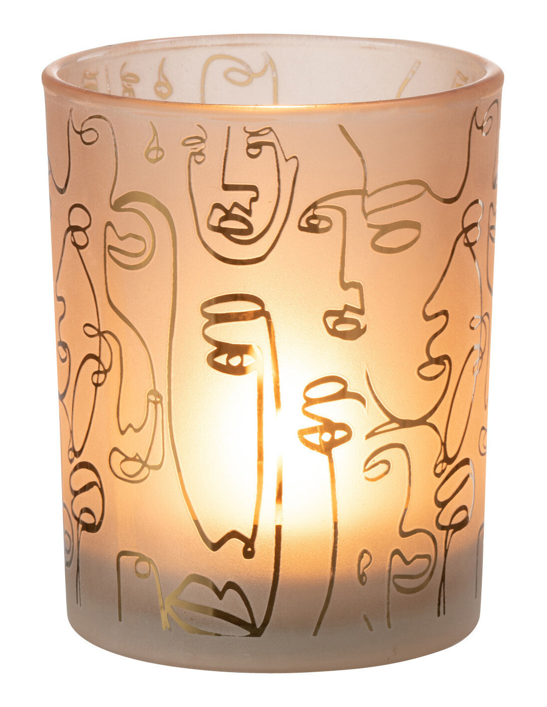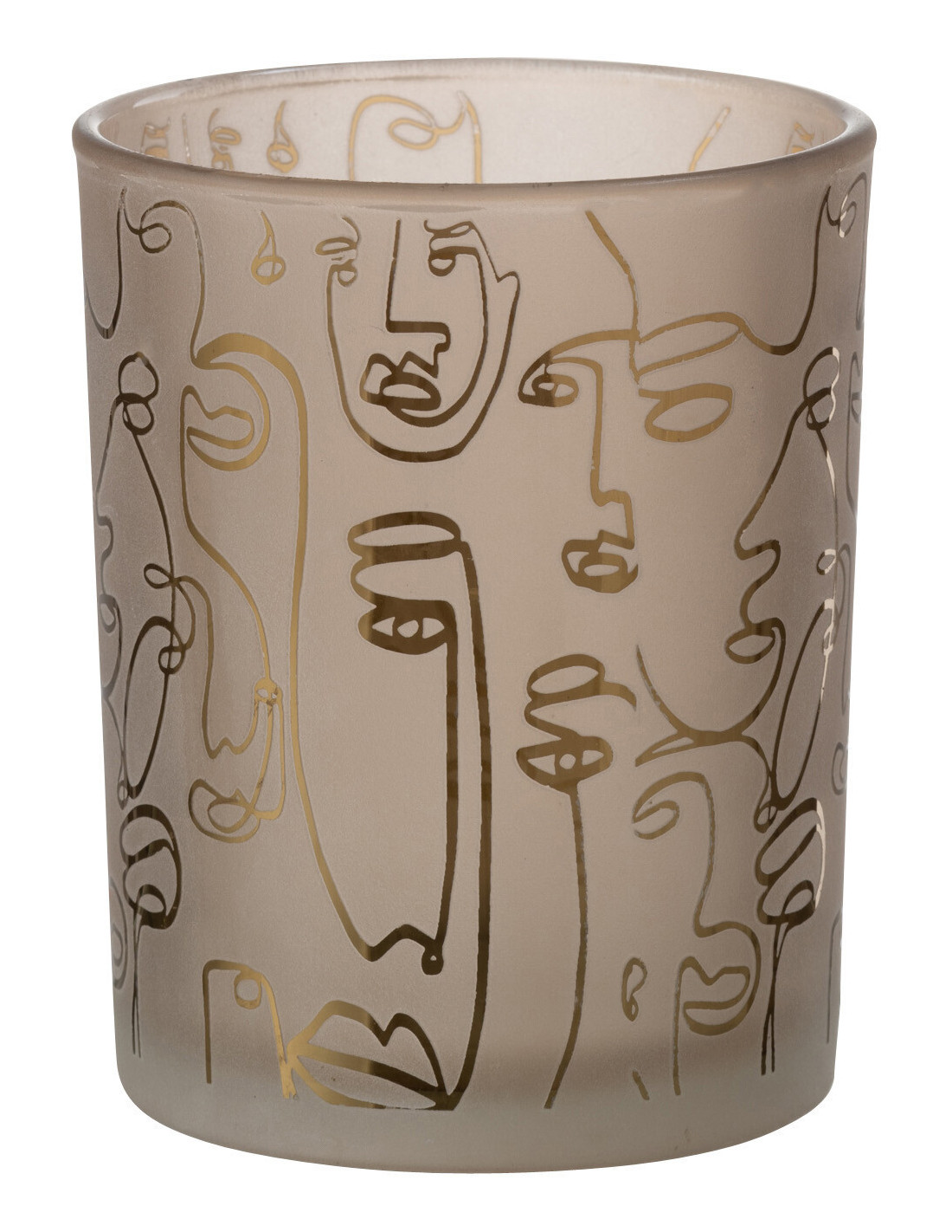 Photophore design Arty Diamètre 10 cm en Verre Ambré Happy faces