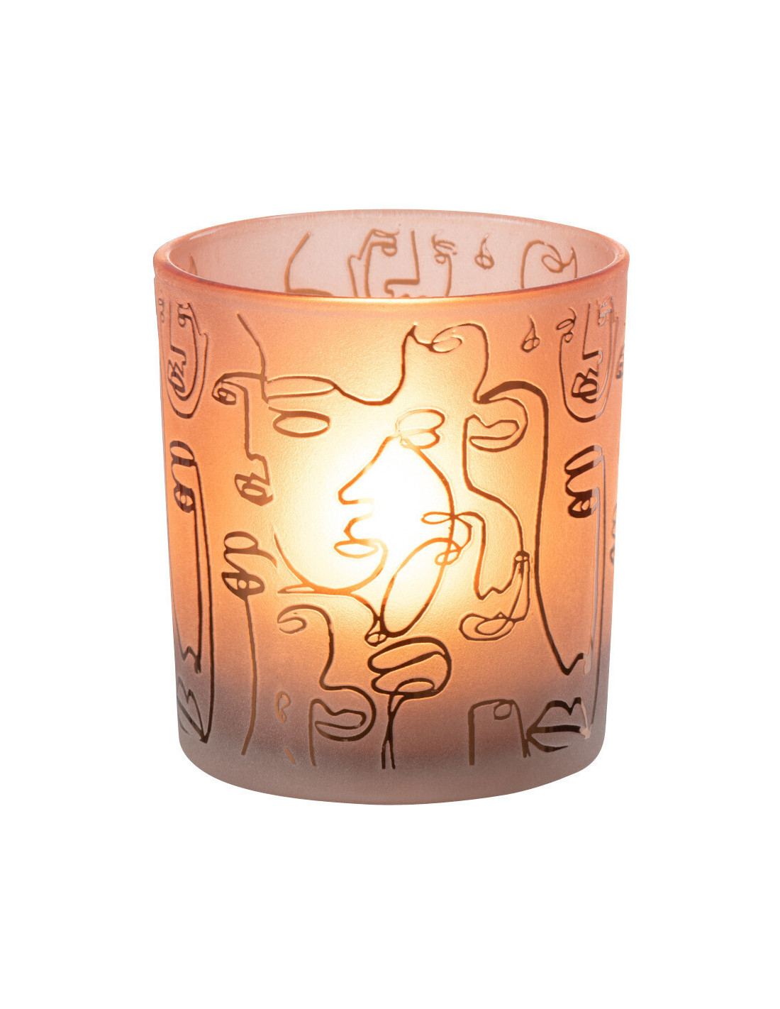 Photophore design Arty Diamètre 7 cm en Verre Terracotta Happy faces - 1