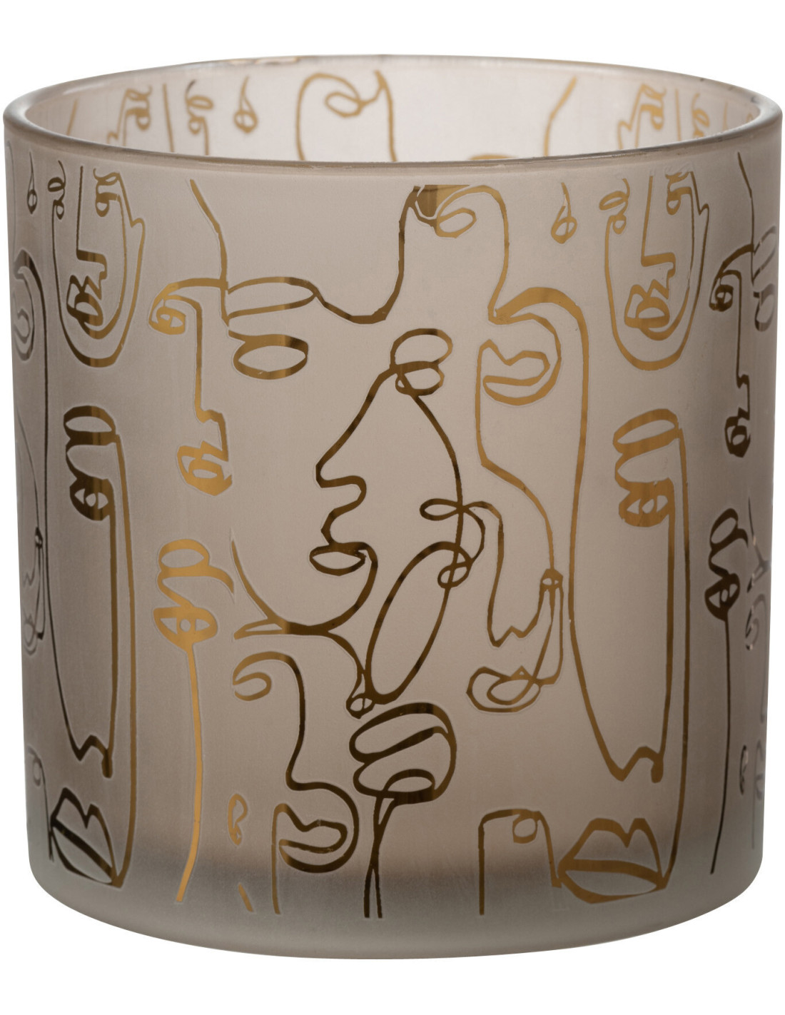 Photophore design Arty XL Diamètre 15 cm en Verre Ambré Happy faces