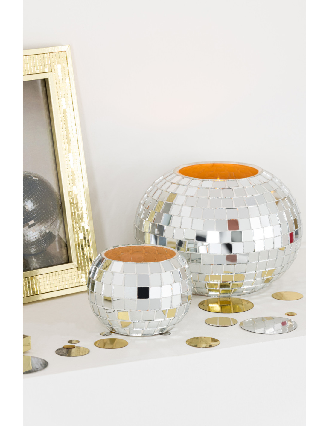 Photophore design boule à facettes D 9 cm Miroir Argenté Disco
