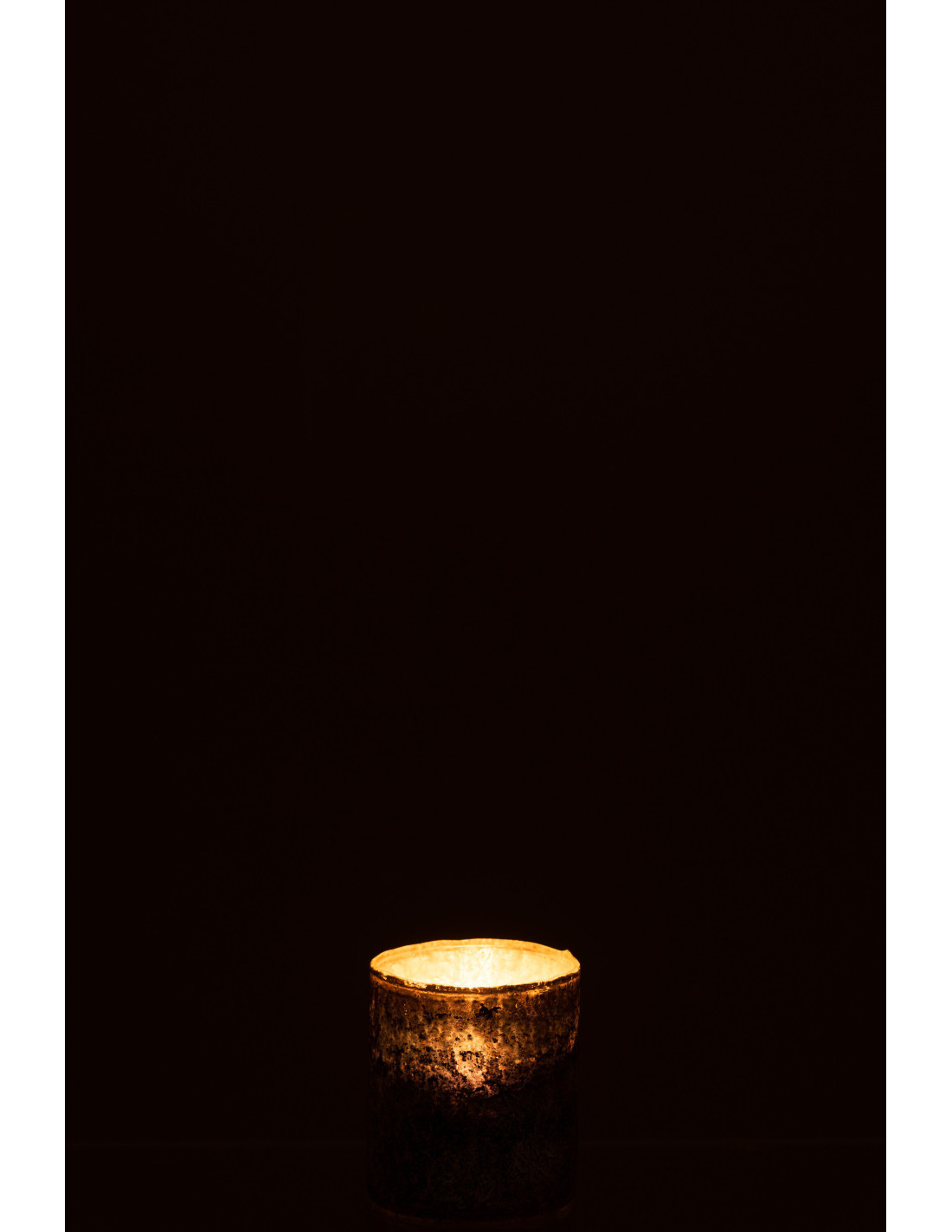 Ce photophore ne diffuse pas une lumière classique. Il la filtre, l’adoucit, la transforme. Le verre fumé atténue la flamme pour créer une atmosphère plus feutrée, presque enveloppante, idéale pour des ambiances intimistes.