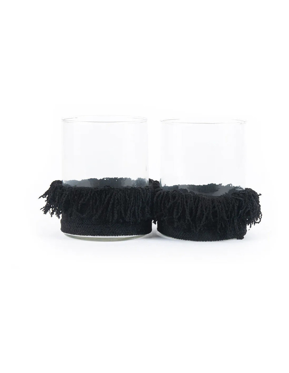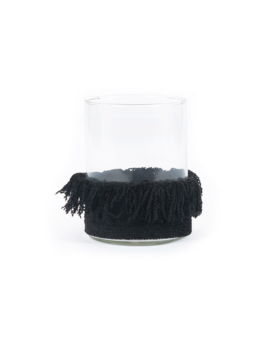 Photophore haut Rond Diamètre 10 cm en Velours Noir Verre Transparent The Oh My Gee