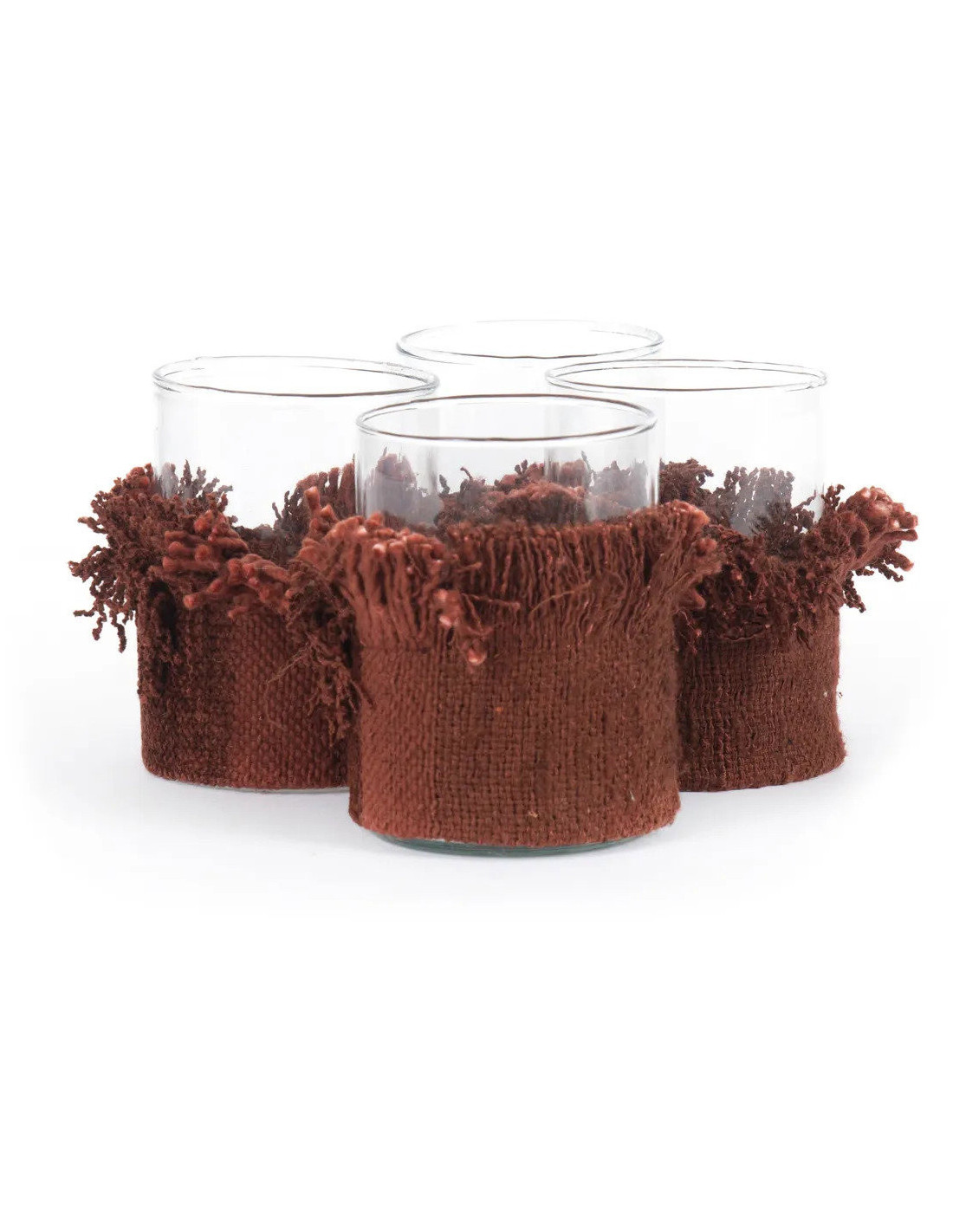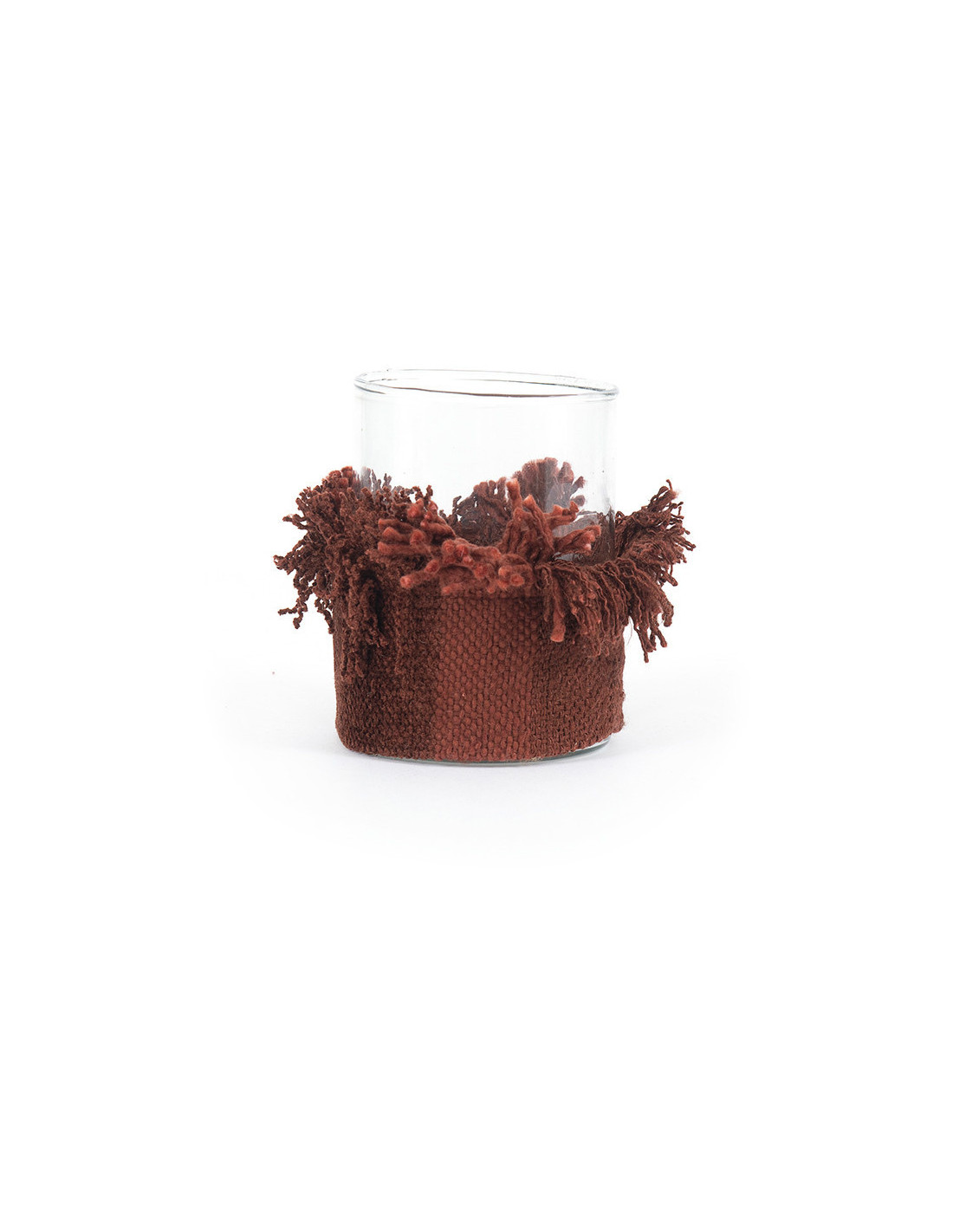 Photophore haut Rond Diamètre 8 cm en Velours Orange rouille Verre Transparent The Oh My Gee