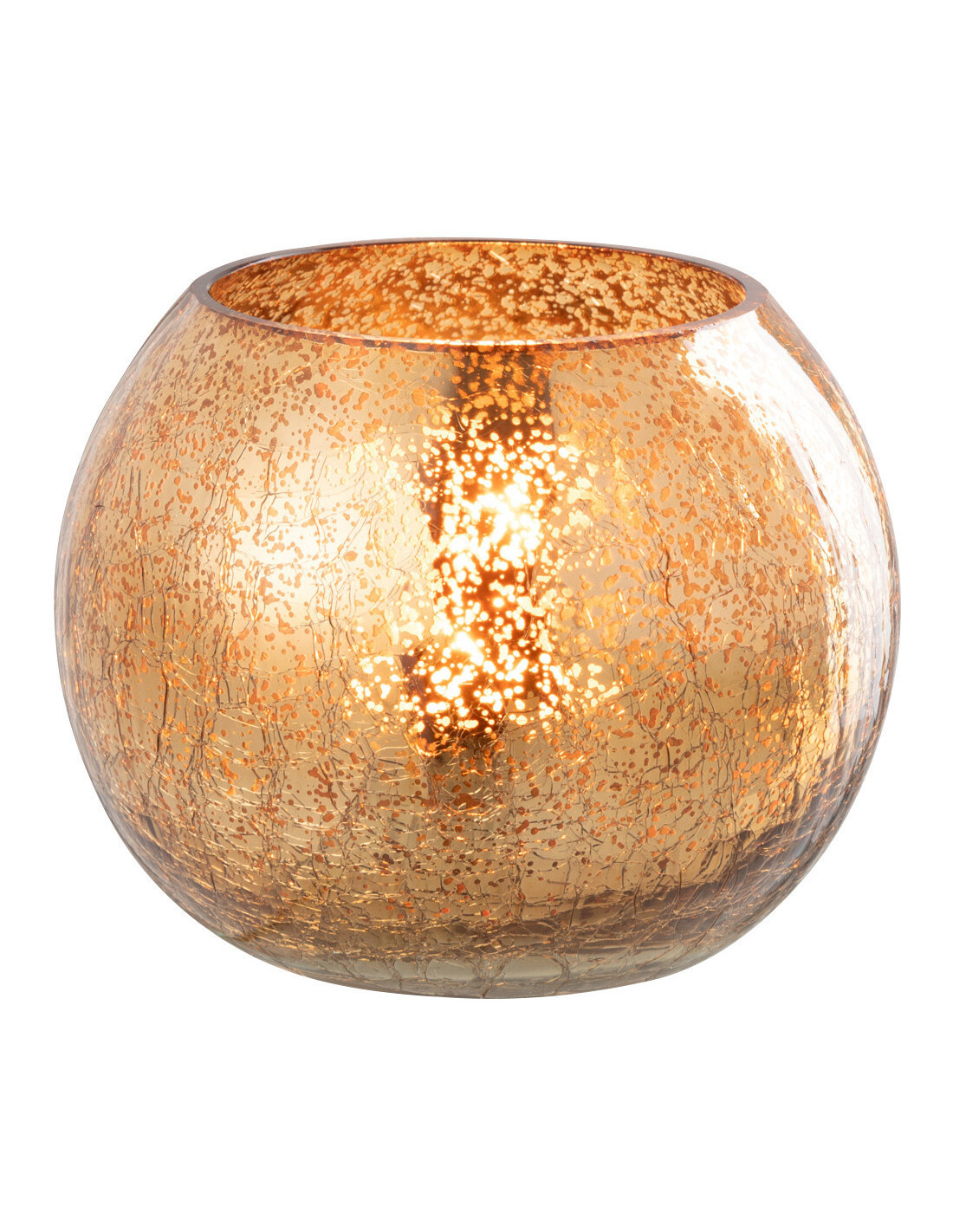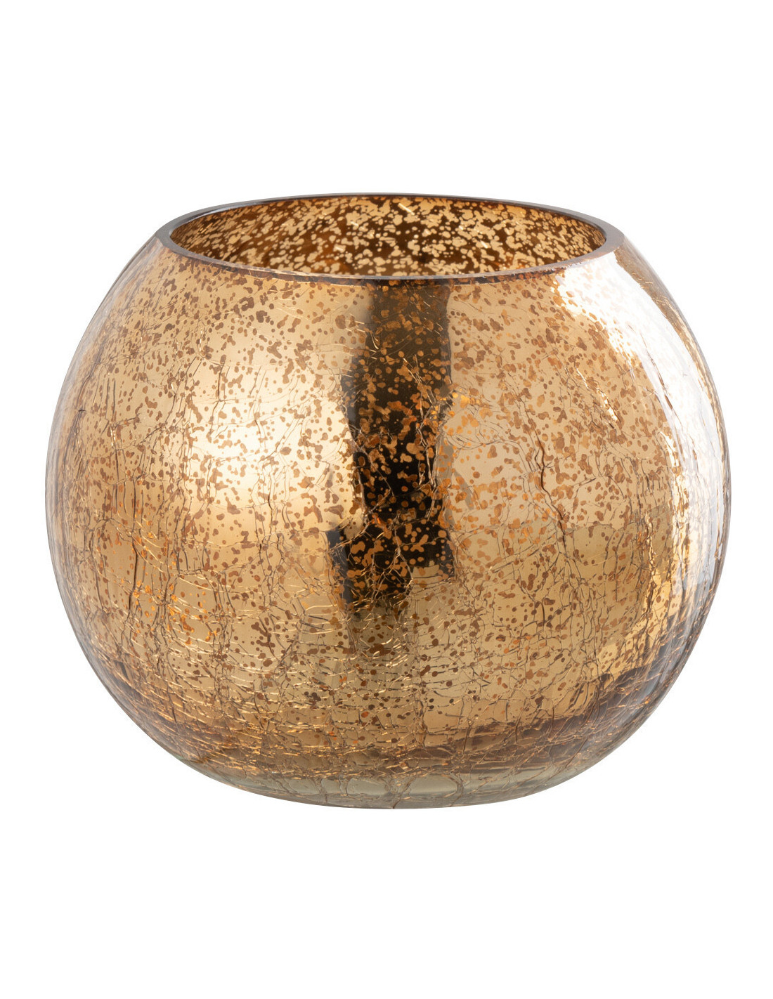 Photophore moderne Boule Diamètre 12 cm en Verre Doré Motif craquelé Freon