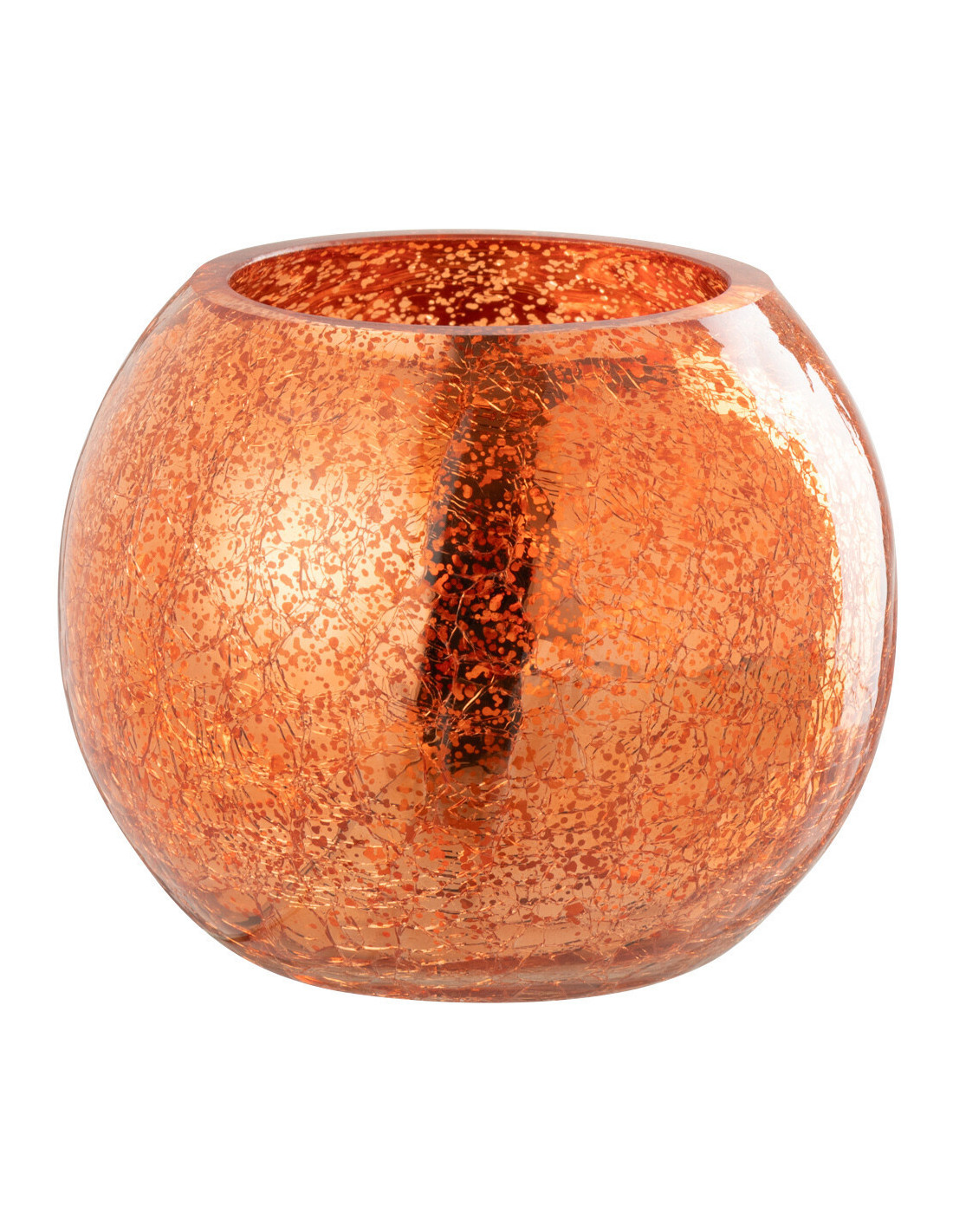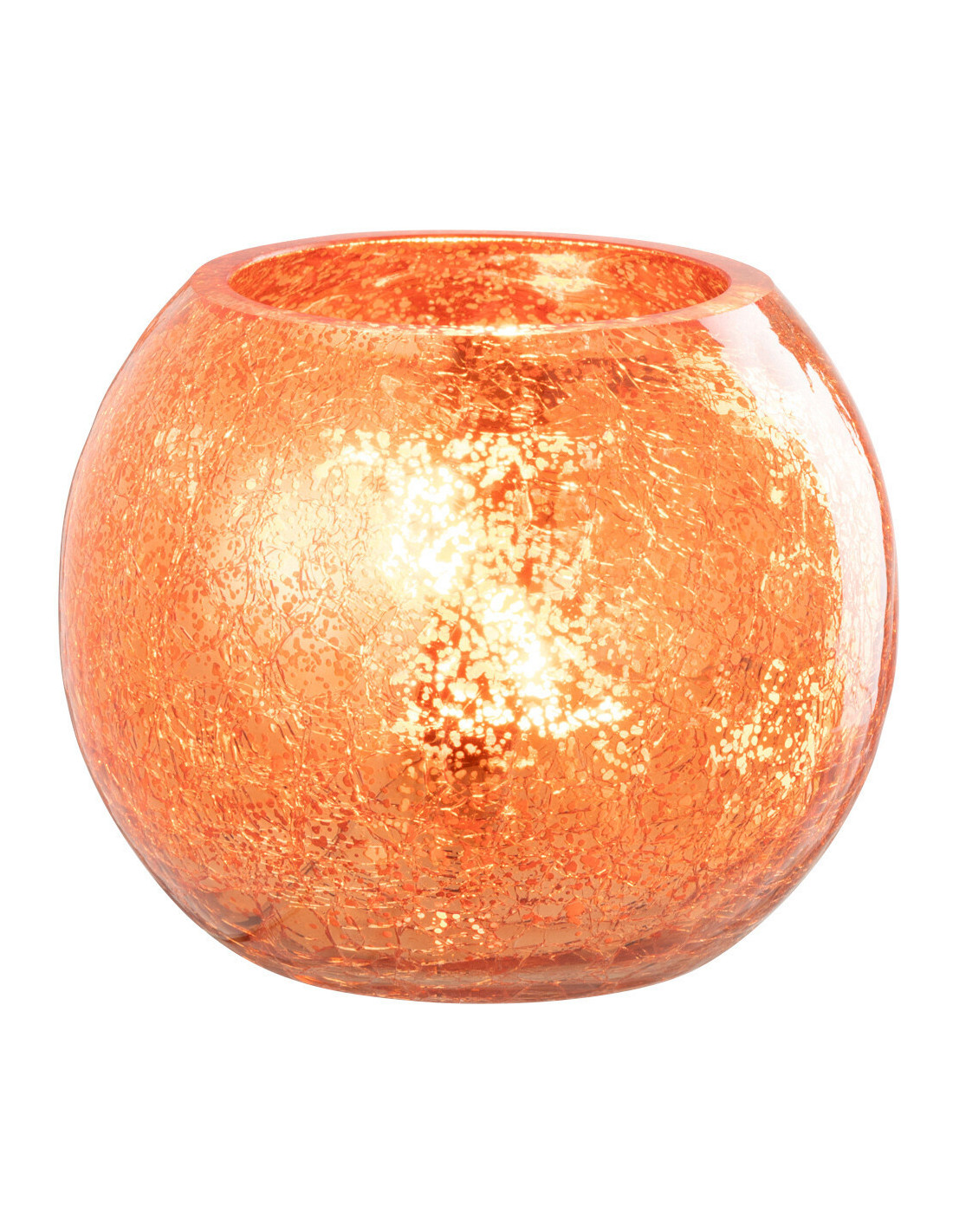 Photophore moderne Boule Diamètre 12 cm en Verre Orange Motif craquelé Freon - 1