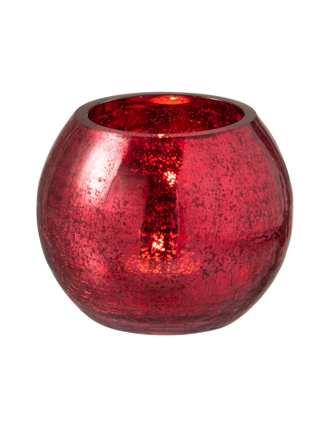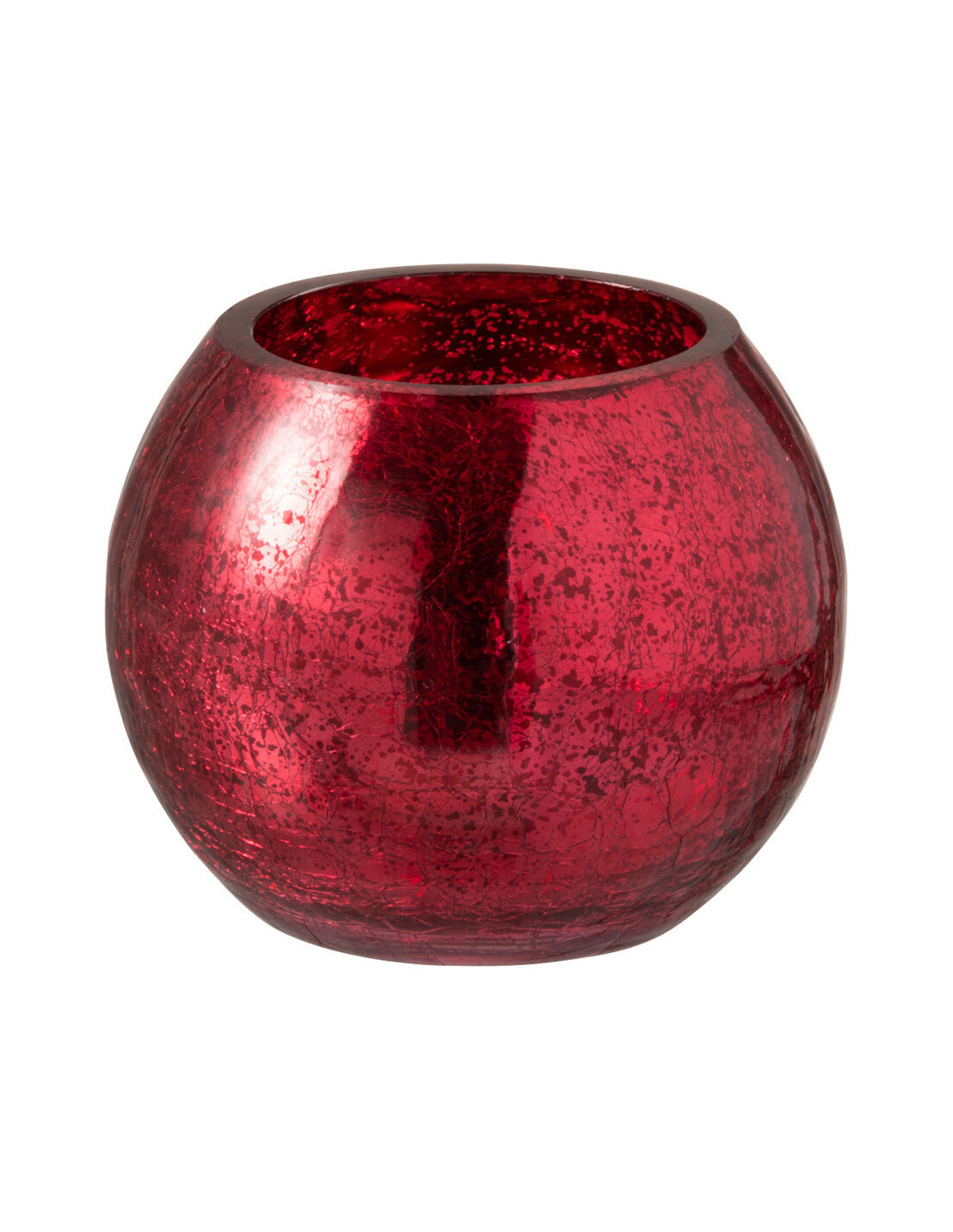 Photophore moderne Boule Diamètre 12 cm en Verre Rouge Motif craquelé Wilho