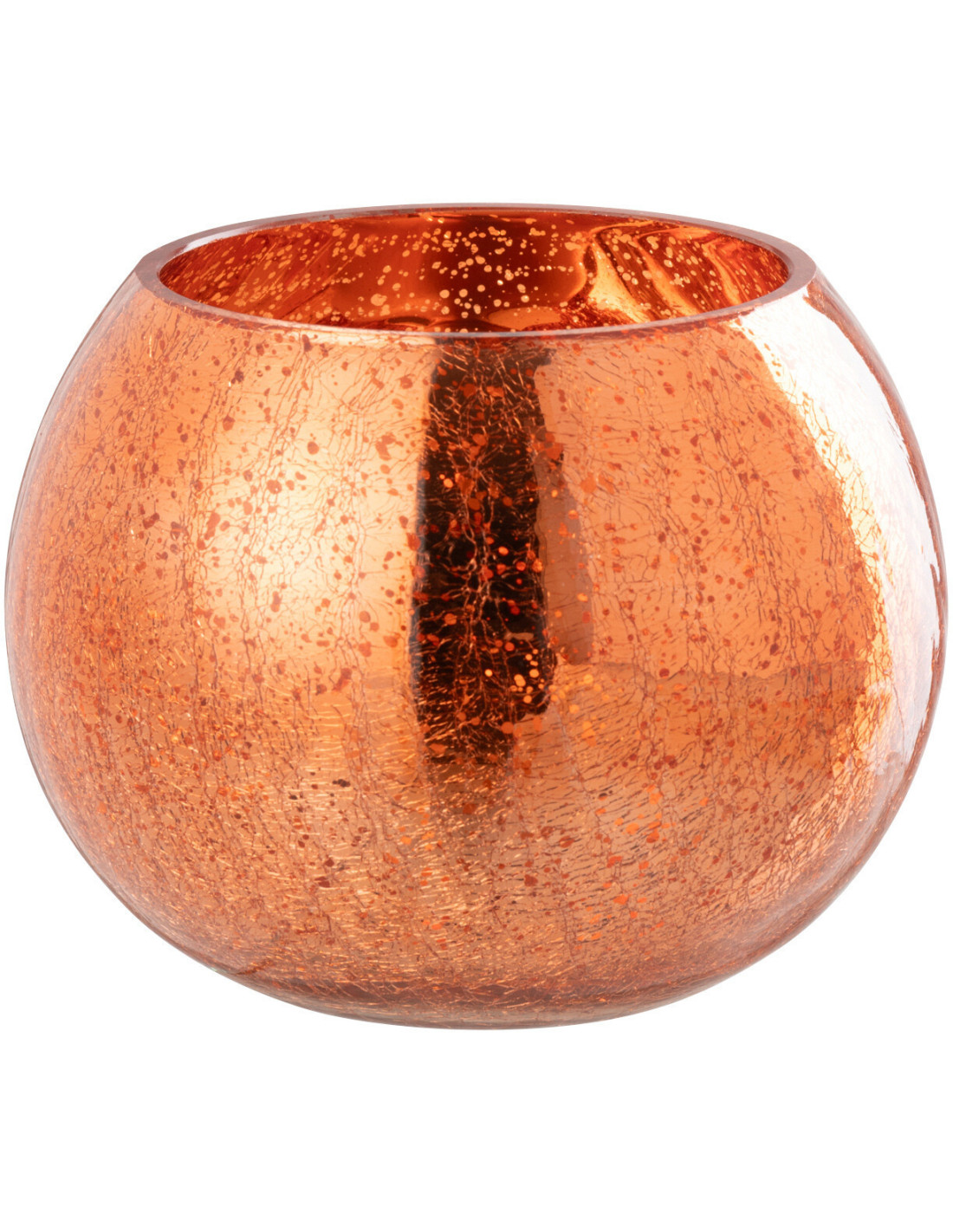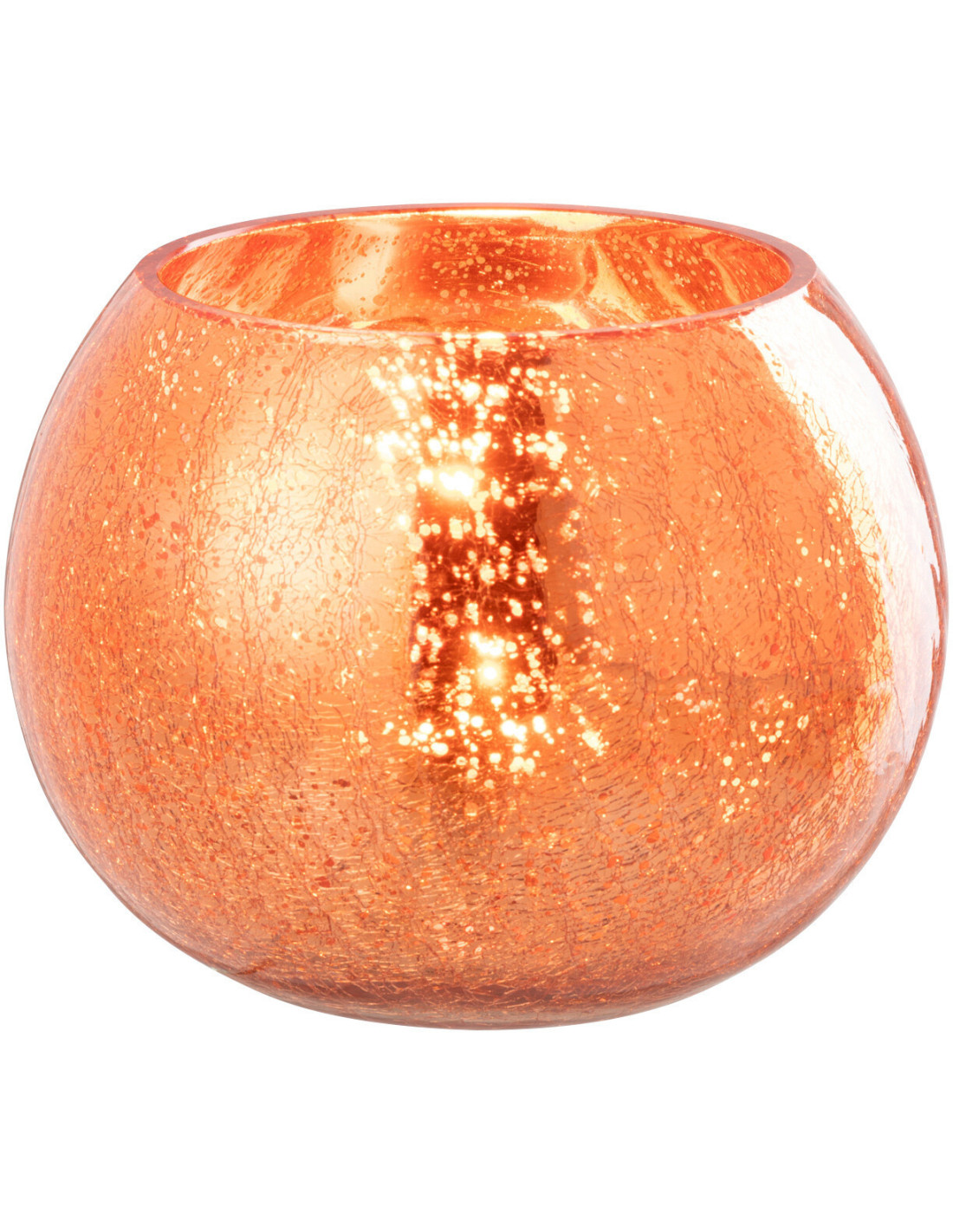 Photophore moderne Boule XL Diamètre 15 cm en Verre Orange Motif craquelé Freon - 1