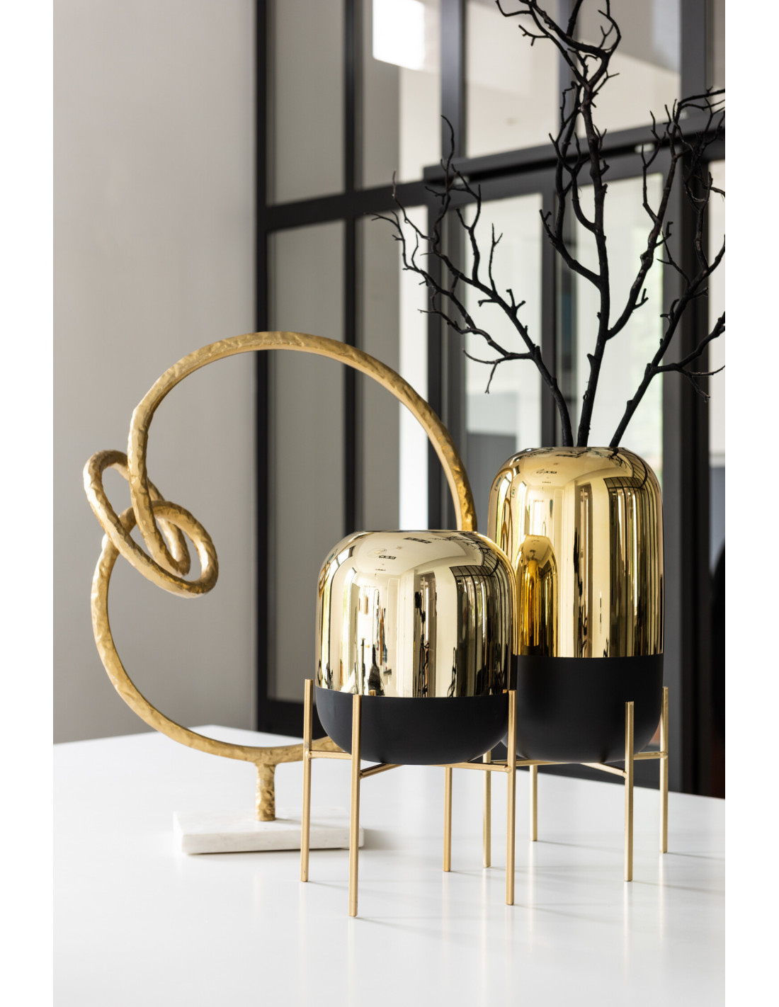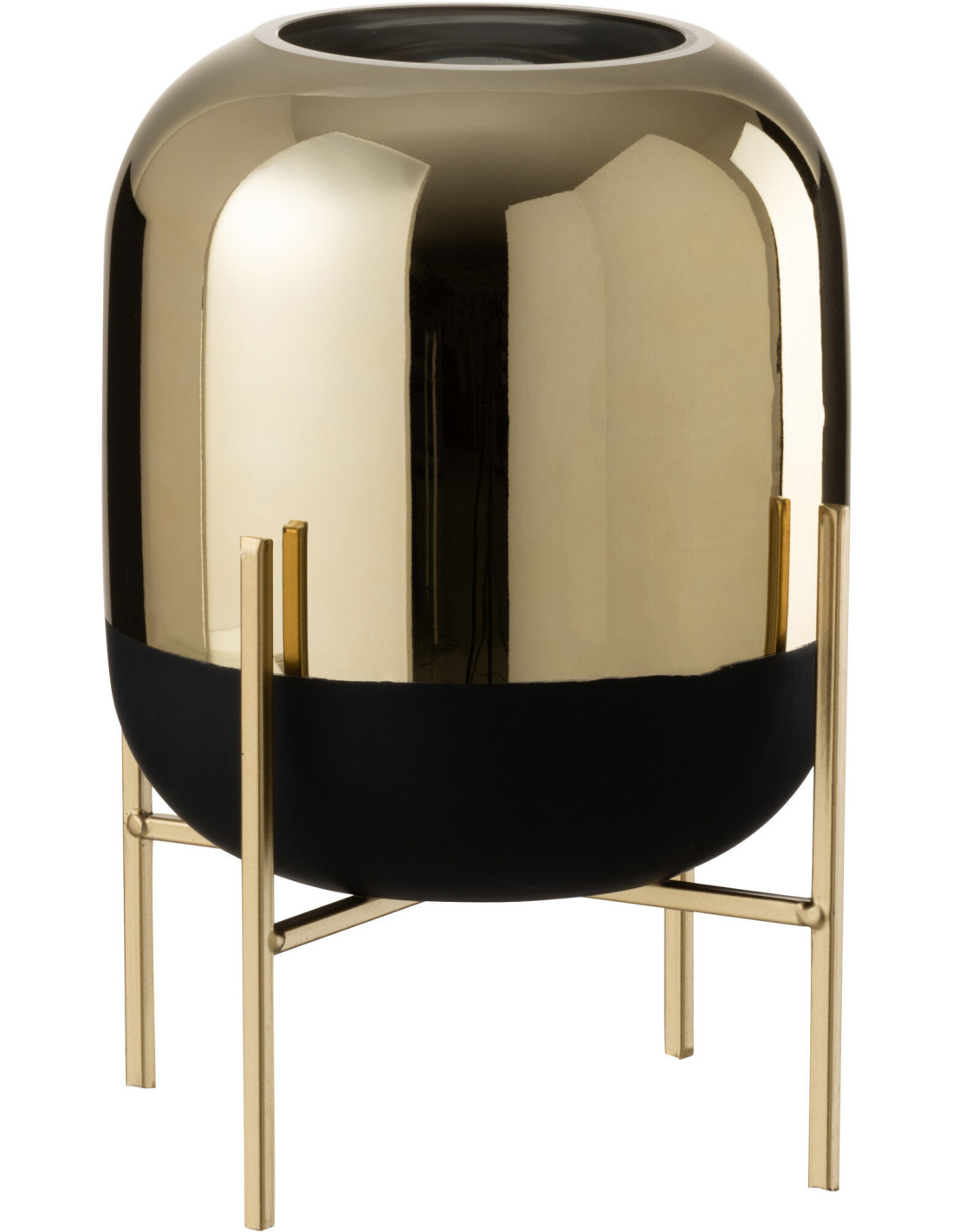 Photophore moderne chic sur pied Hauteur 27 cm en Verre Noir Doré Irlo