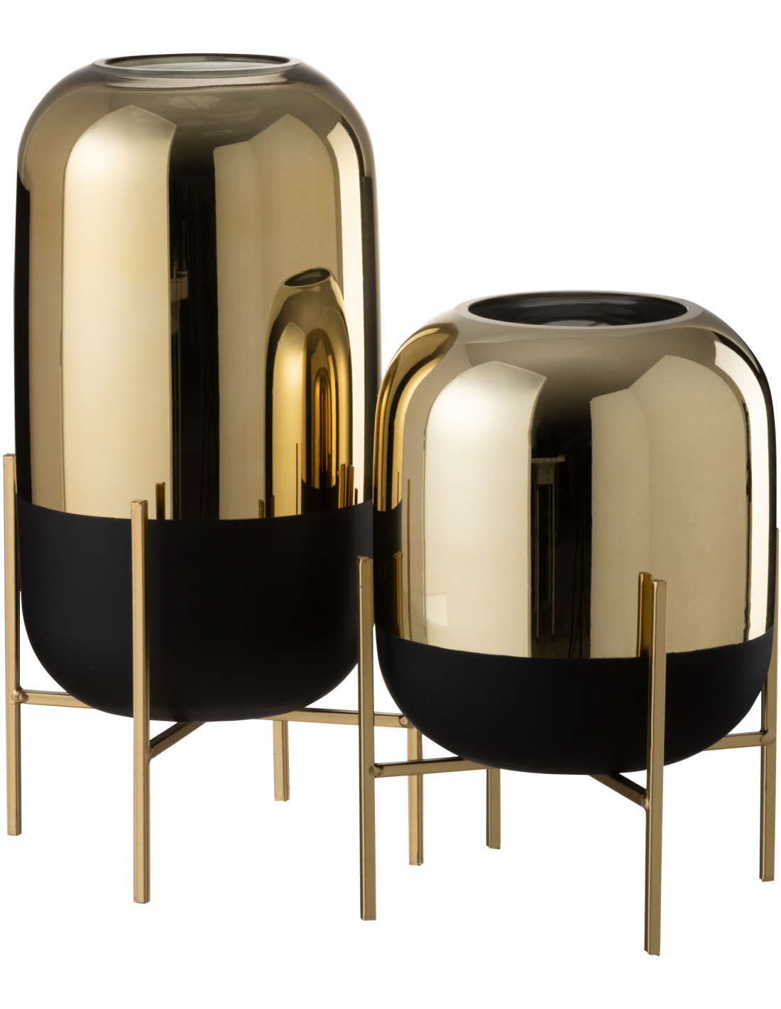 Photophore moderne chic XL sur pied Hauteur 37 cm en Verre Noir Doré Irlo - 1