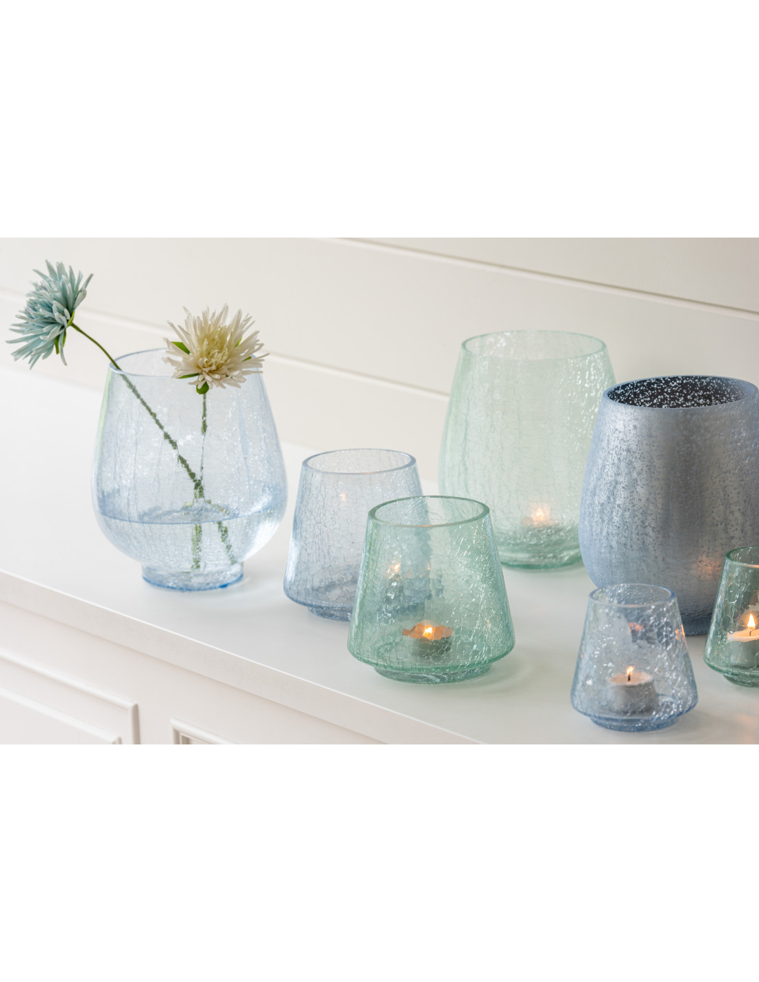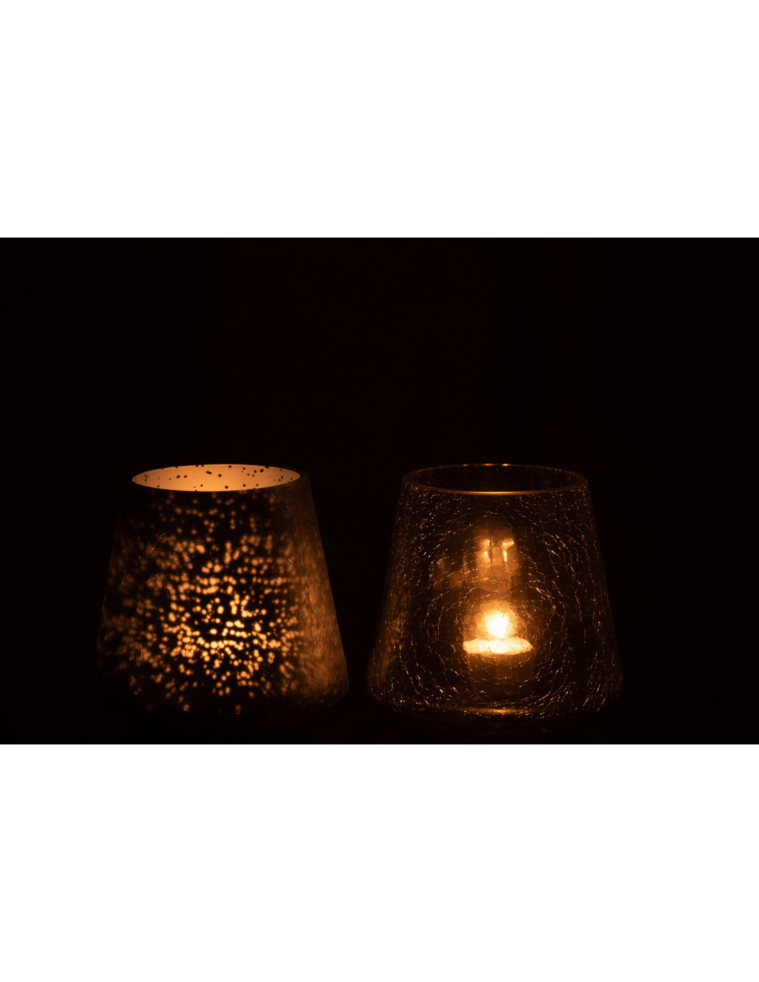 Photophore moderne conique Diamètre 12 cm en Verre Bleu clair Bleu foncé Motif craquelé Kynor (Lot de 2)
