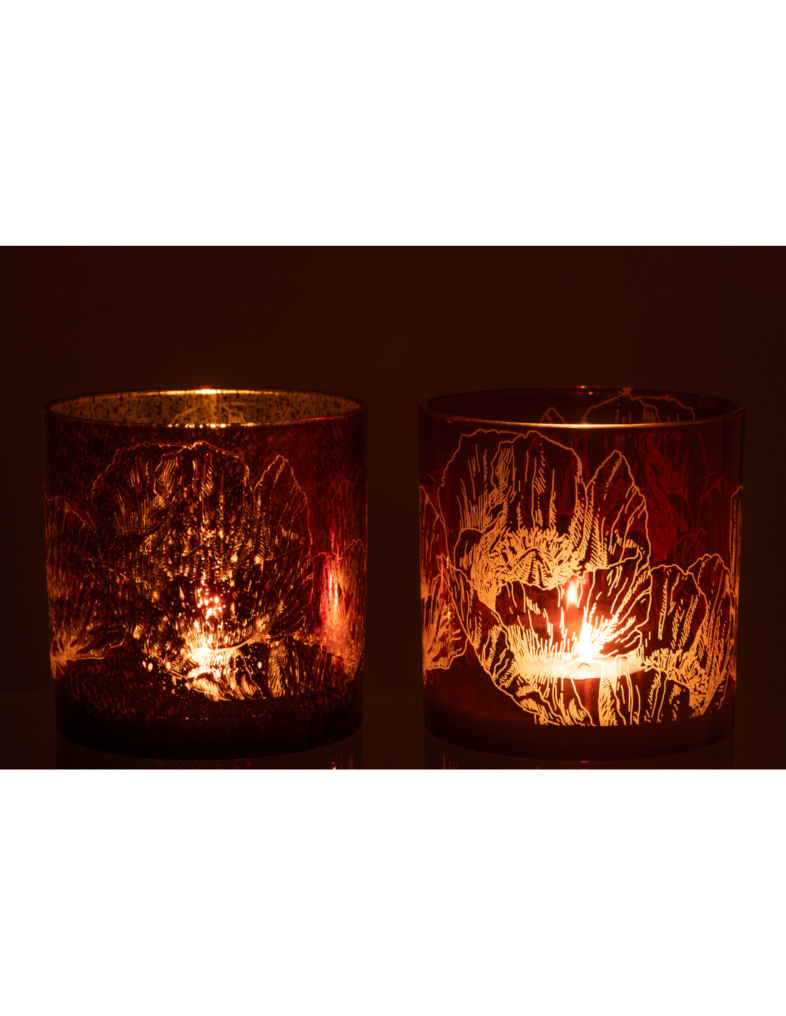Photophore moderne Coquelicot XL Diamètre 15 cm en Verre Bordeaux Rouge Yuron (Lot de 2)