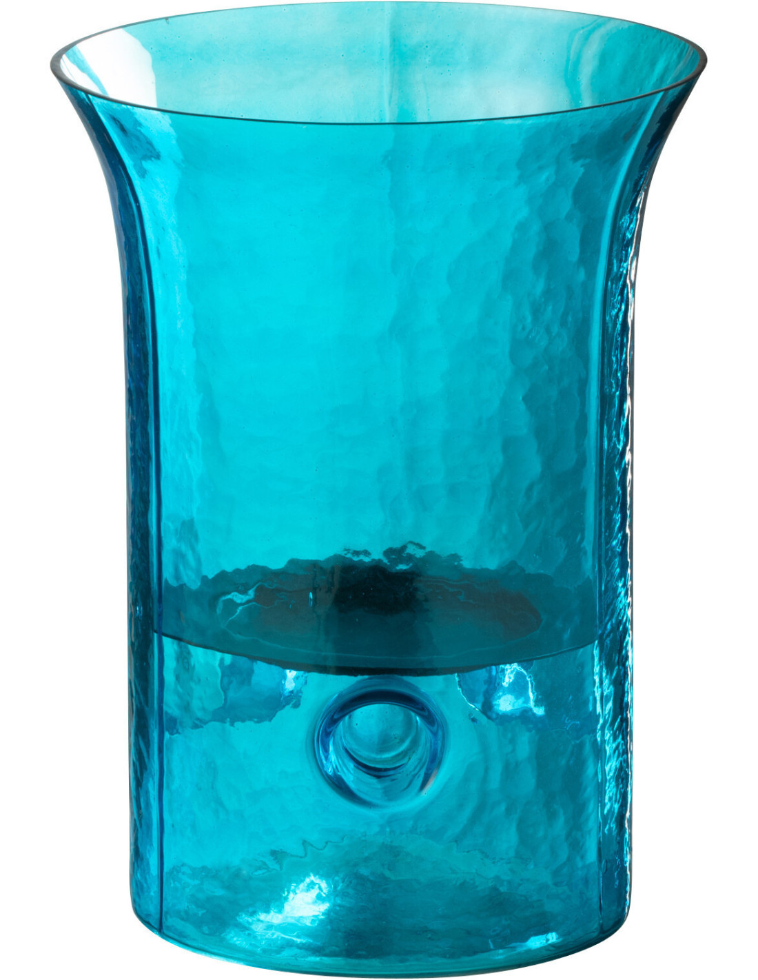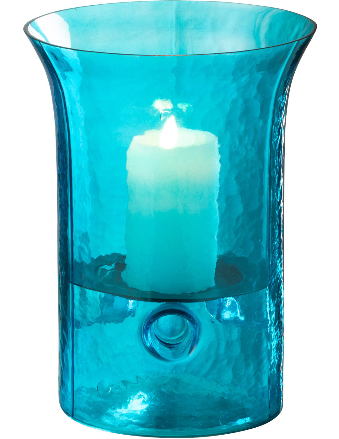 Photophore moderne cylindrique Hauteur 21 cm en Verre Bleu azur Métal Noir Tarifa