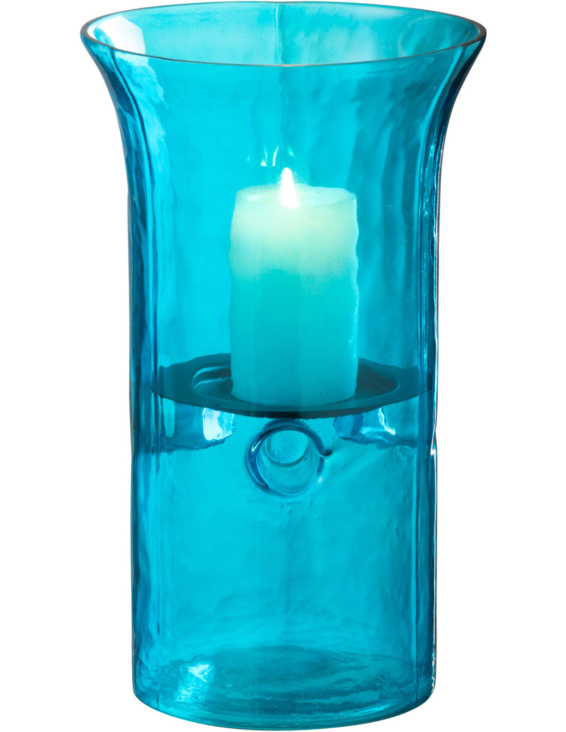 Photophore moderne cylindrique Hauteur 26 cm en Verre Bleu azur Métal Noir Tarifa