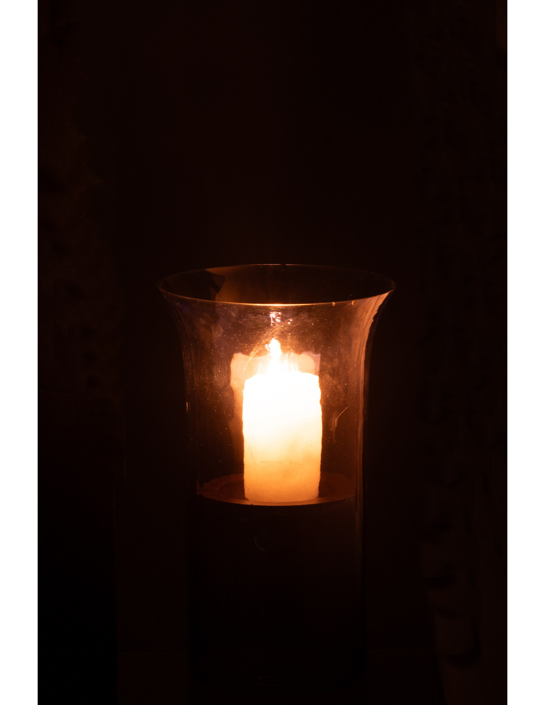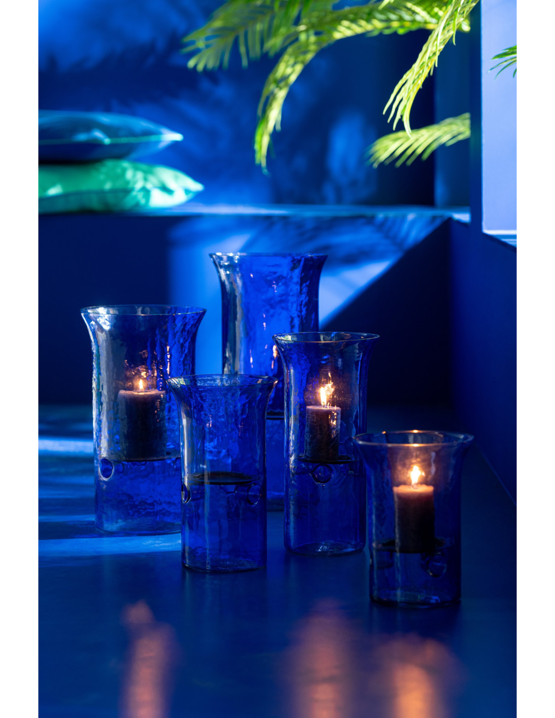 Photophore moderne cylindrique Hauteur 26 cm en Verre Bleu Métal Noir Tarifa