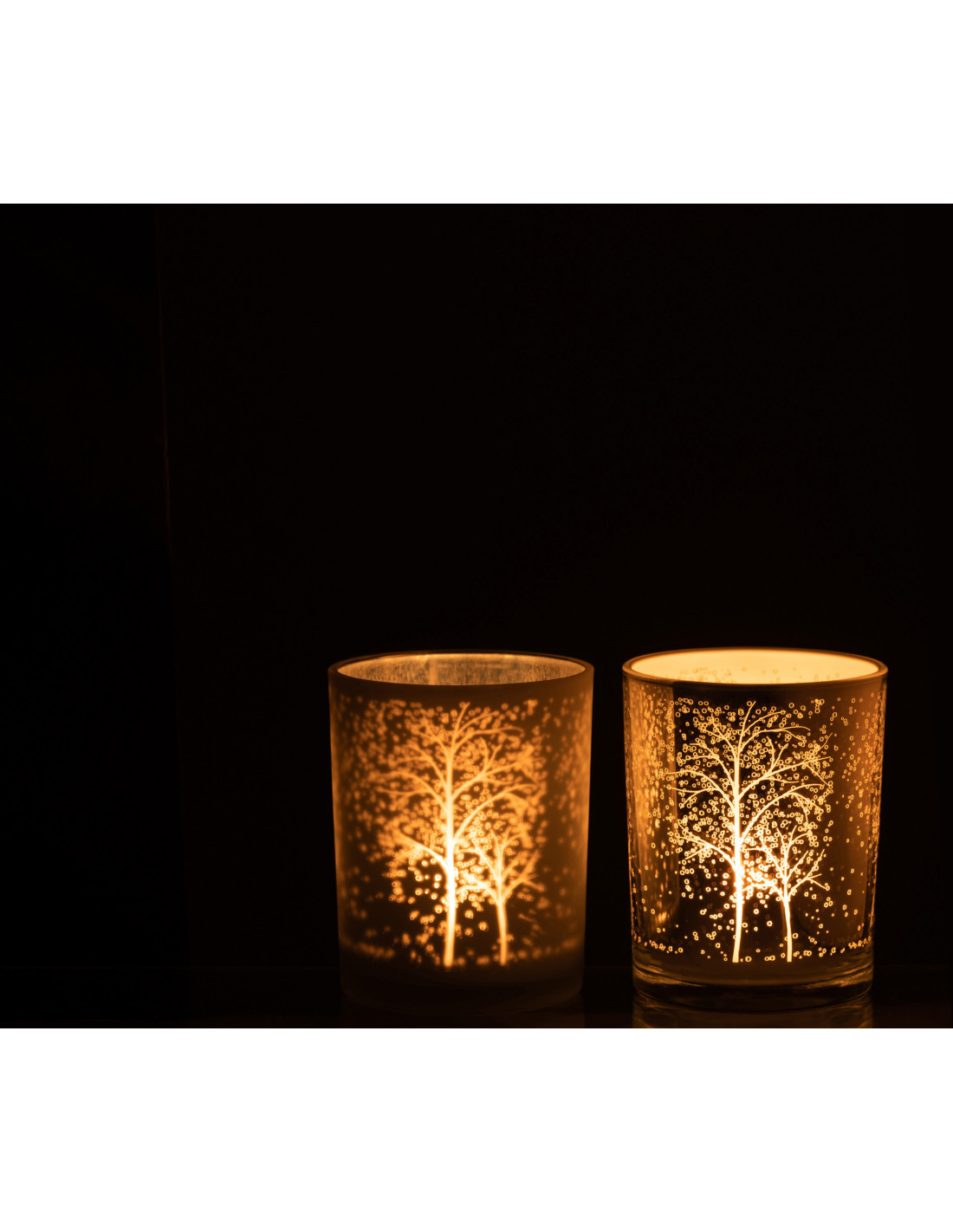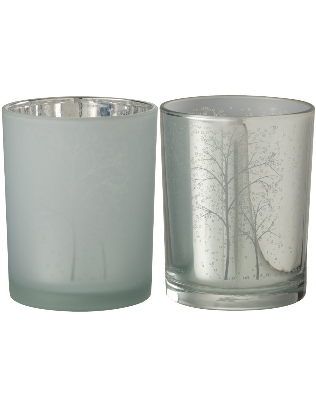 Photophore moderne Diamètre 10 cm en Verre Argenté Blanc Motif arbres Eralon (Lot de 2)
