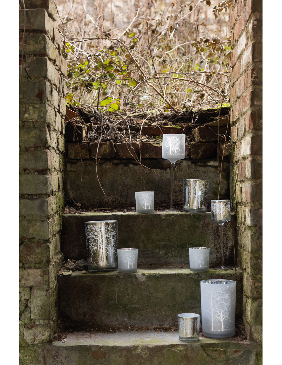 Photophore moderne Diamètre 10 cm en Verre Argenté Blanc Motif arbres Eralon (Lot de 2) - 4