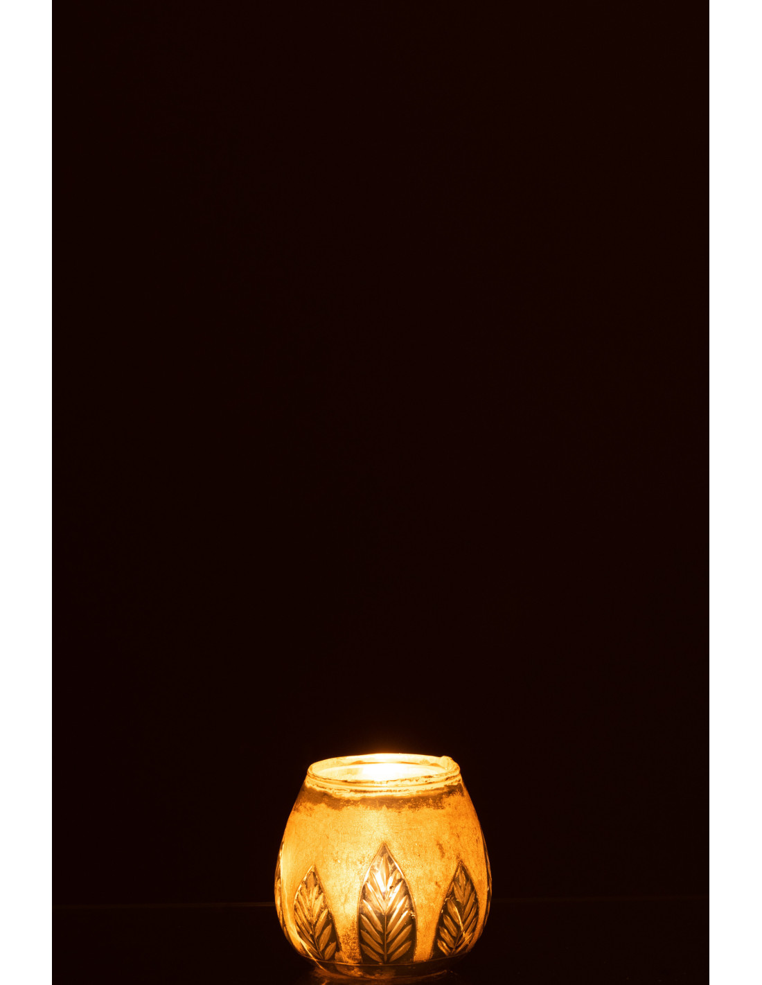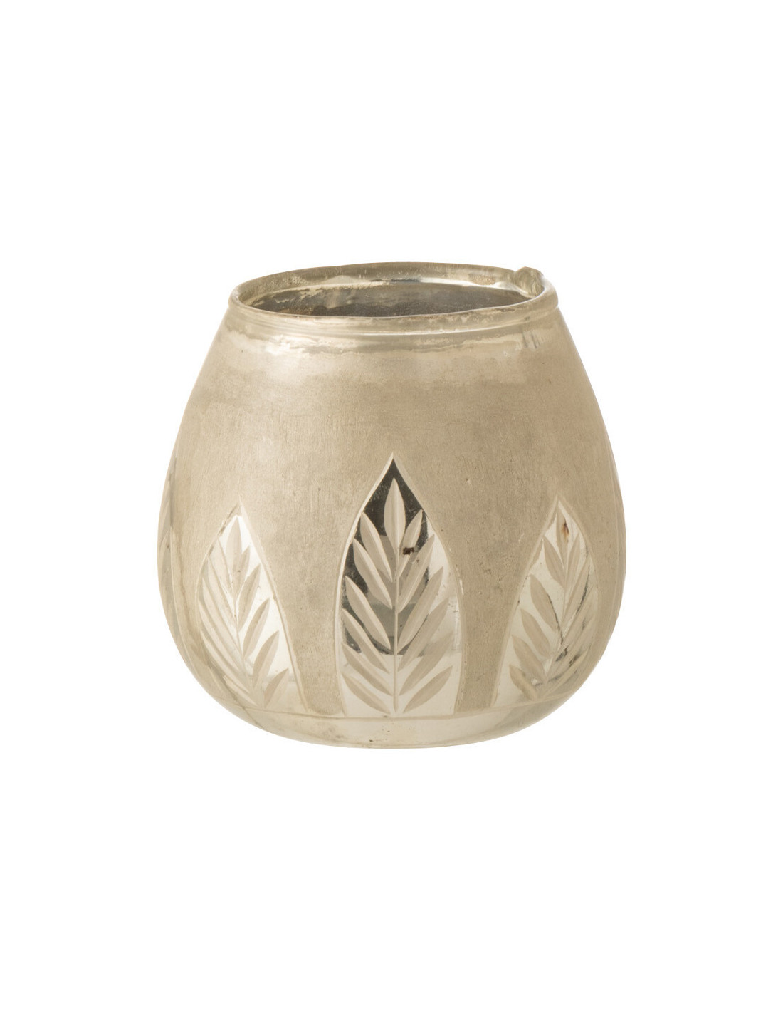 Photophore moderne Diamètre 10 cm en Verre Argenté Motif feuilles Nialen