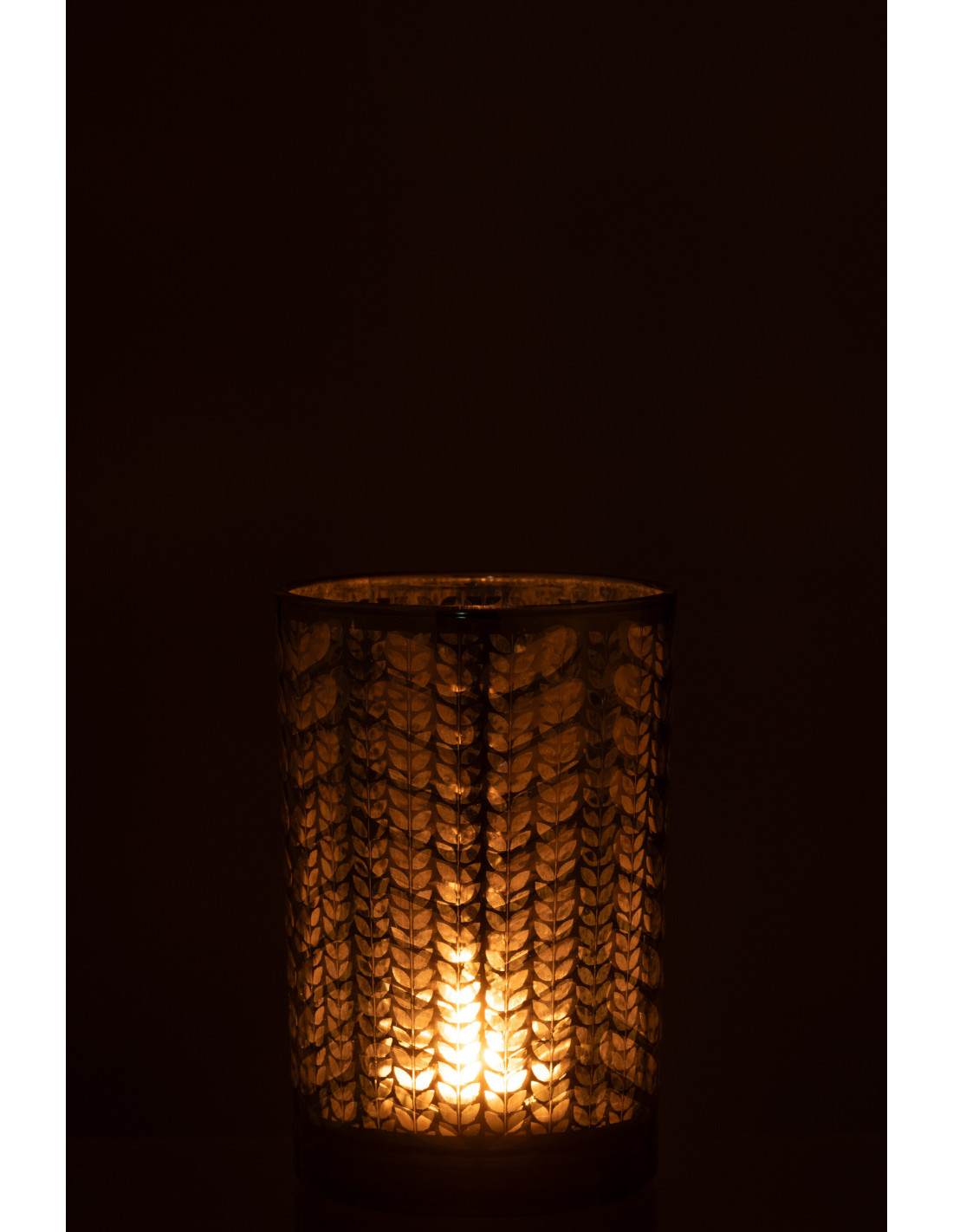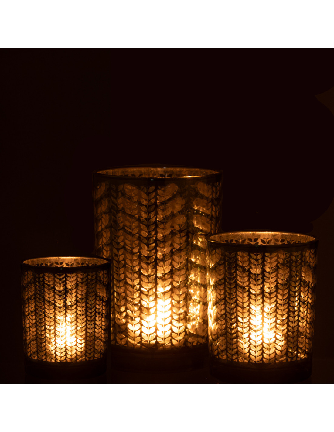 Photophore moderne Diamètre 12 cm en Verre Vert Argenté Motif chevrons Breno