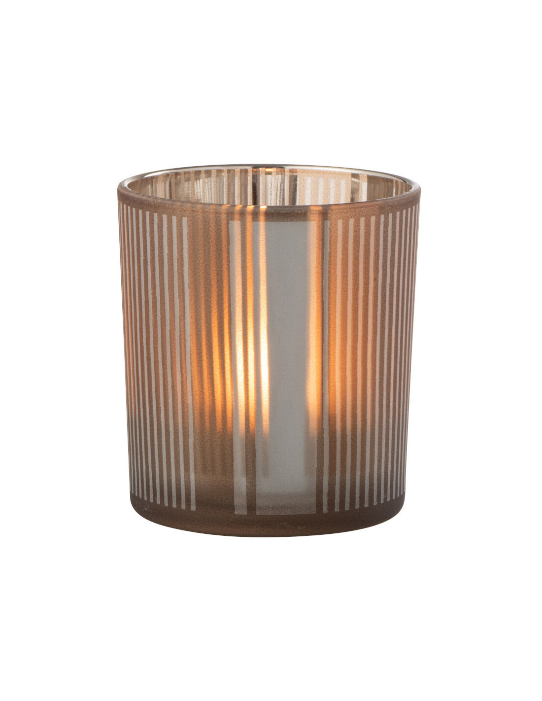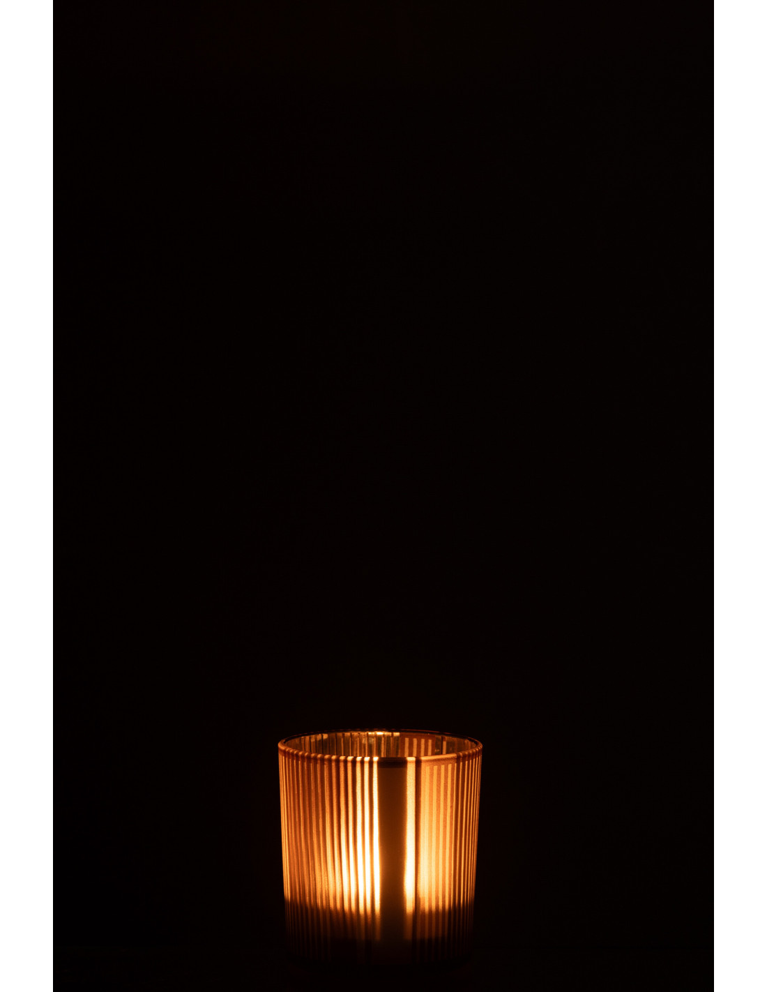 Photophore moderne Diamètre 7 cm en Verre Ambré Blanc Motif lignes Tarnin
