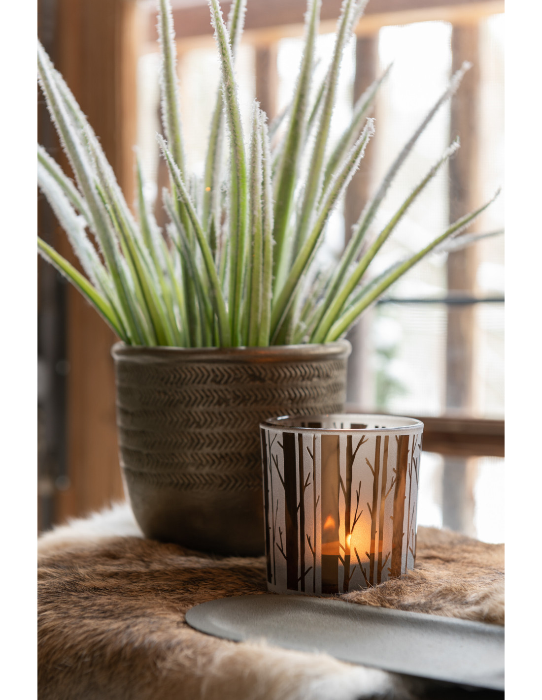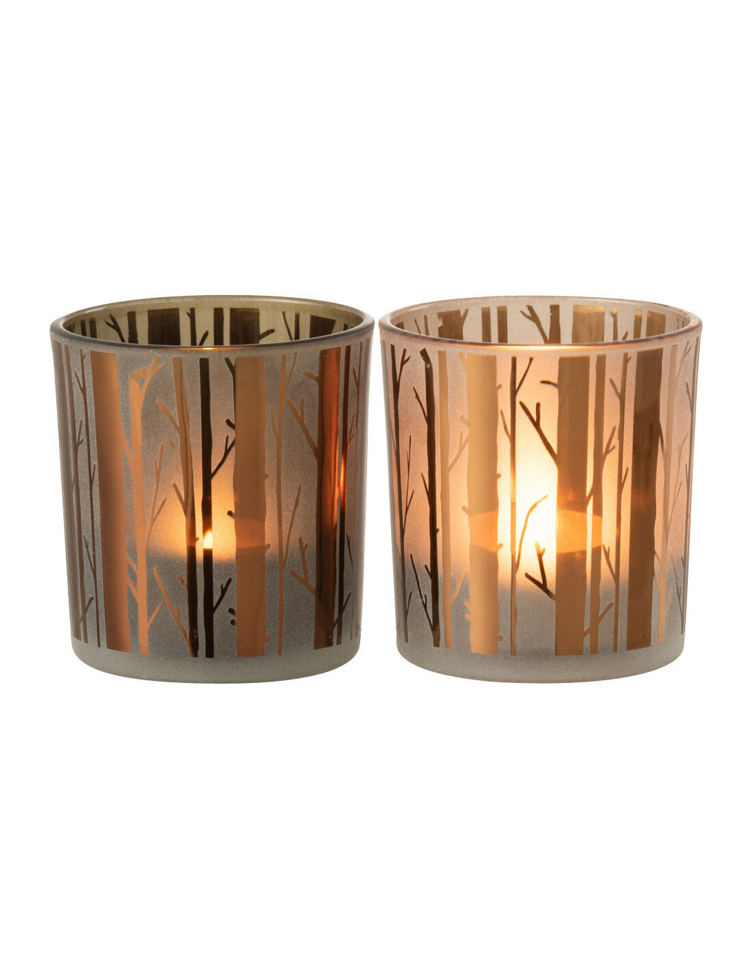Photophore moderne Diamètre 7 cm en Verre Marron Motif arbres Cadenk